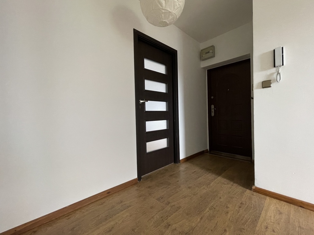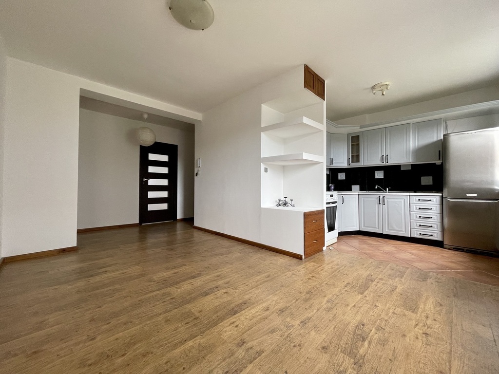 Mieszkanie bez umeblowania. Na nieruchomości pozostaje jedynie kuchnia w zabudowie, łazienka oraz szafa typu „Komandor” w przedpokoju.