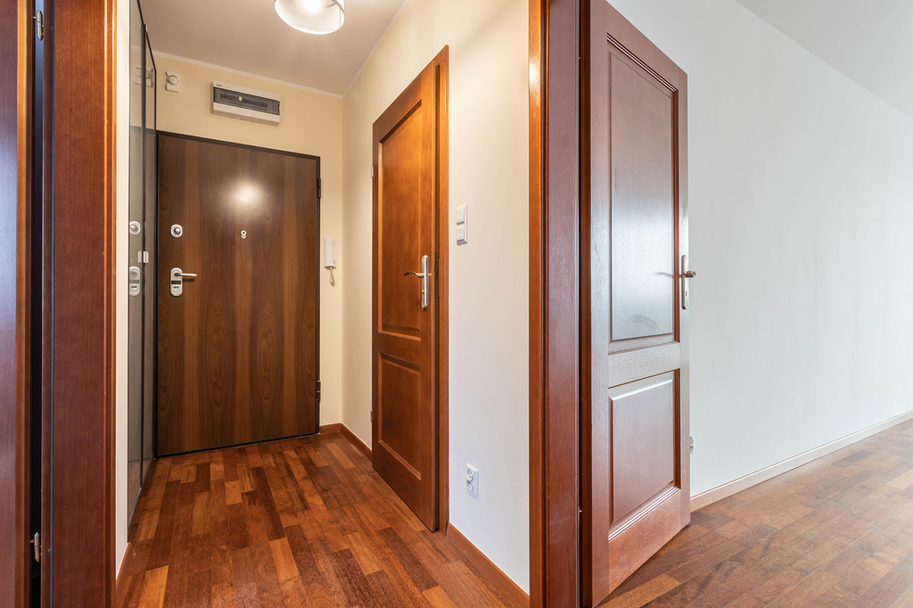 Mieszkanie w pełni umeblowane ( oprócz salonu ). Na podłogach deska barlinecka.
