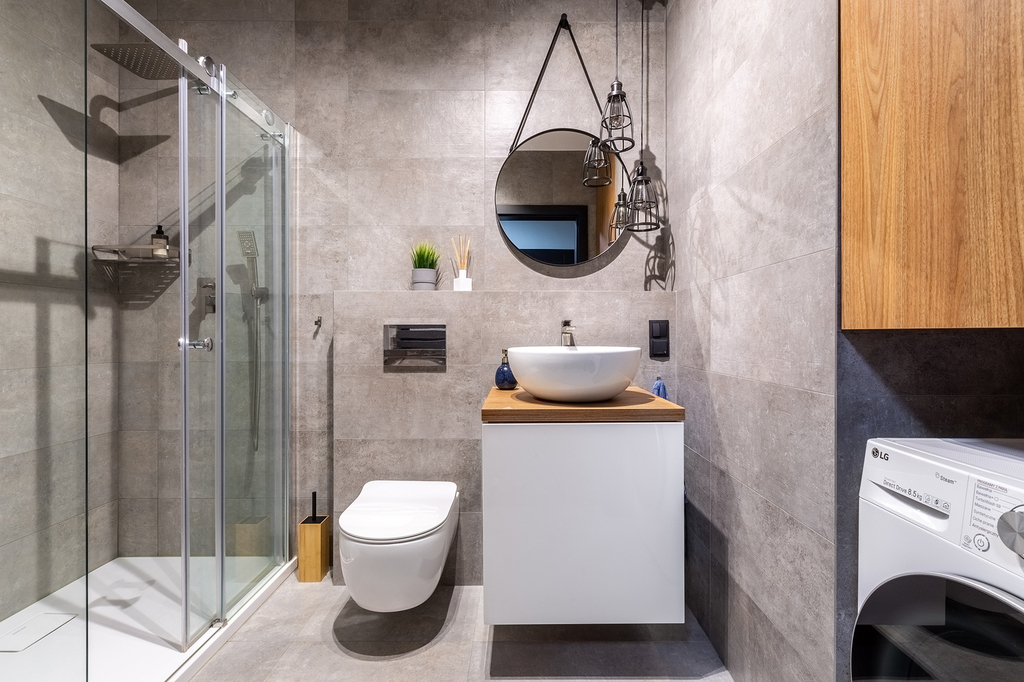 – łazienka ( dobrej jakości armatura , szafka w zabudowie , toaleta , duży prysznic , pralka )