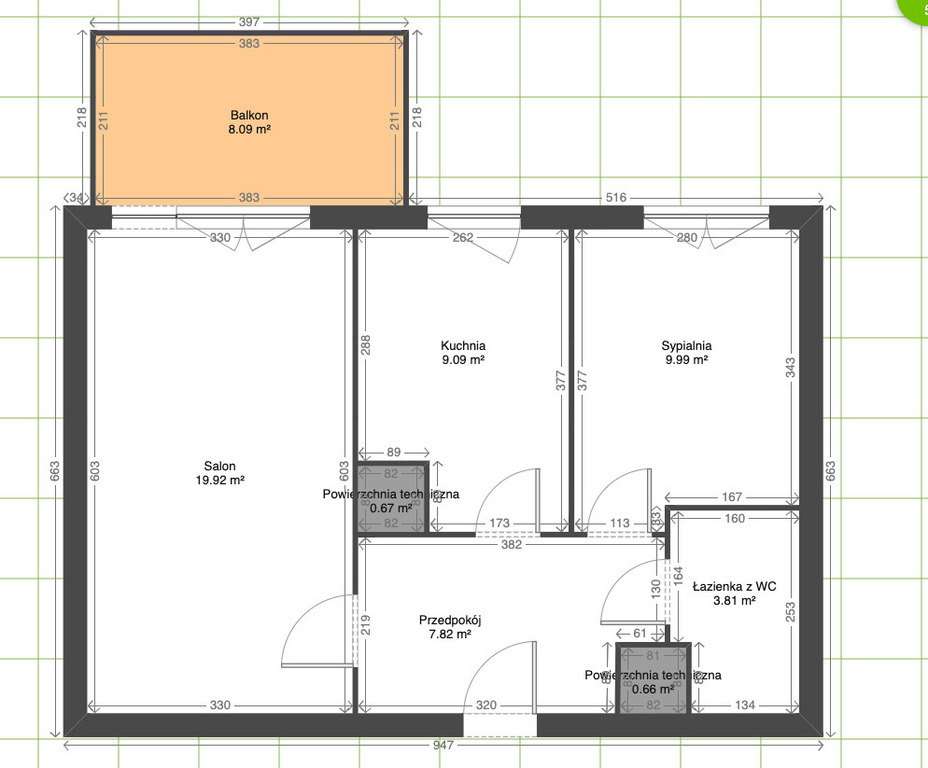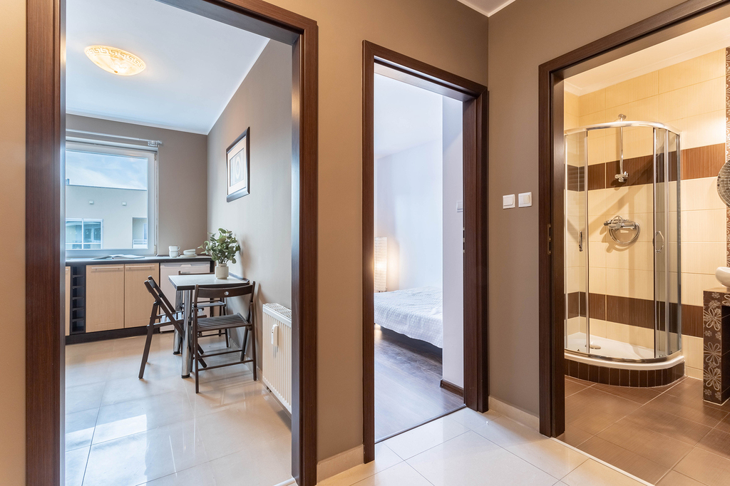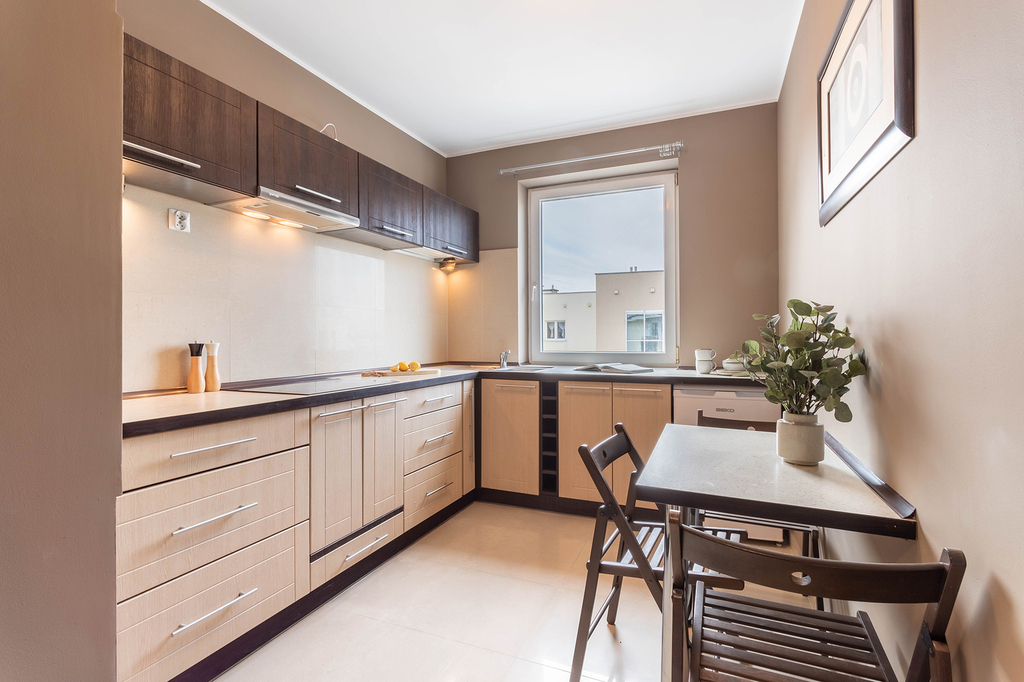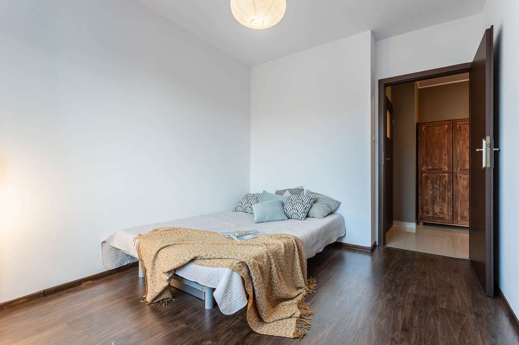 W łatwy sposób można zmienić układ mieszkania przenosząc kuchnię do salonu (aneks). W ten sposób powstanie kolejna sypialnia.