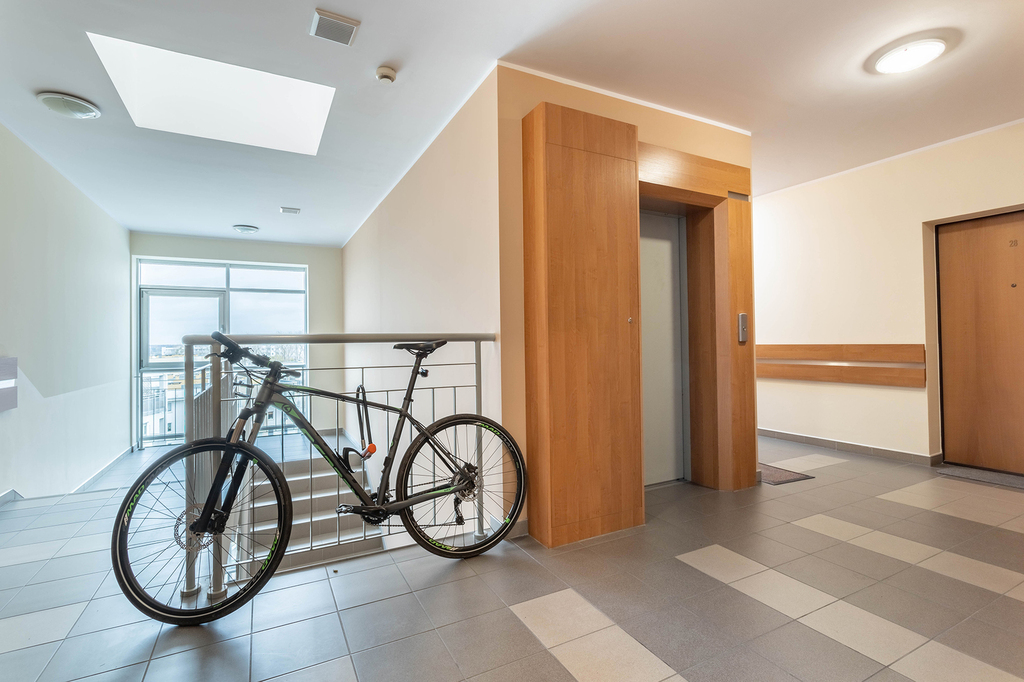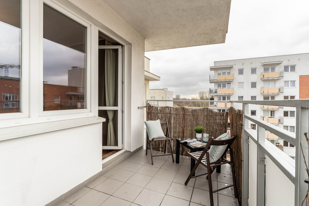 MIeszkanie z ekspozycją południową, na ostatnim, szóstym piętrze z dużym balkonem.