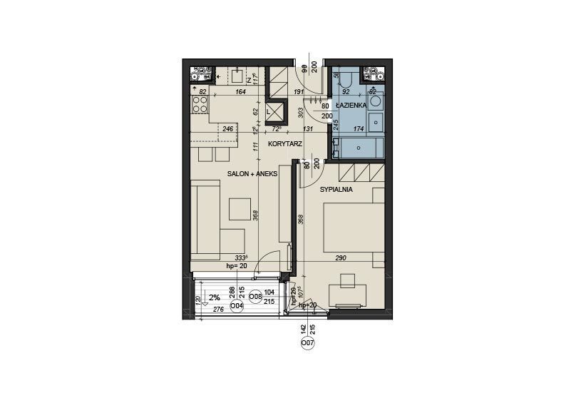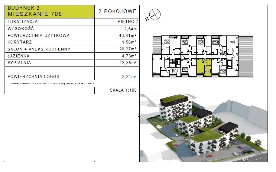 Mieszkanie posiada powierzchnię 43,2 mkw + loggia.