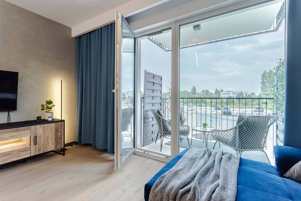 – salon z wyjściem na balkon od strony Warty ( cisza i spokój )