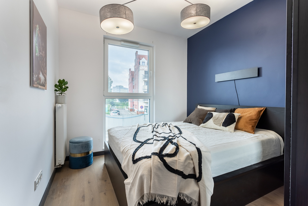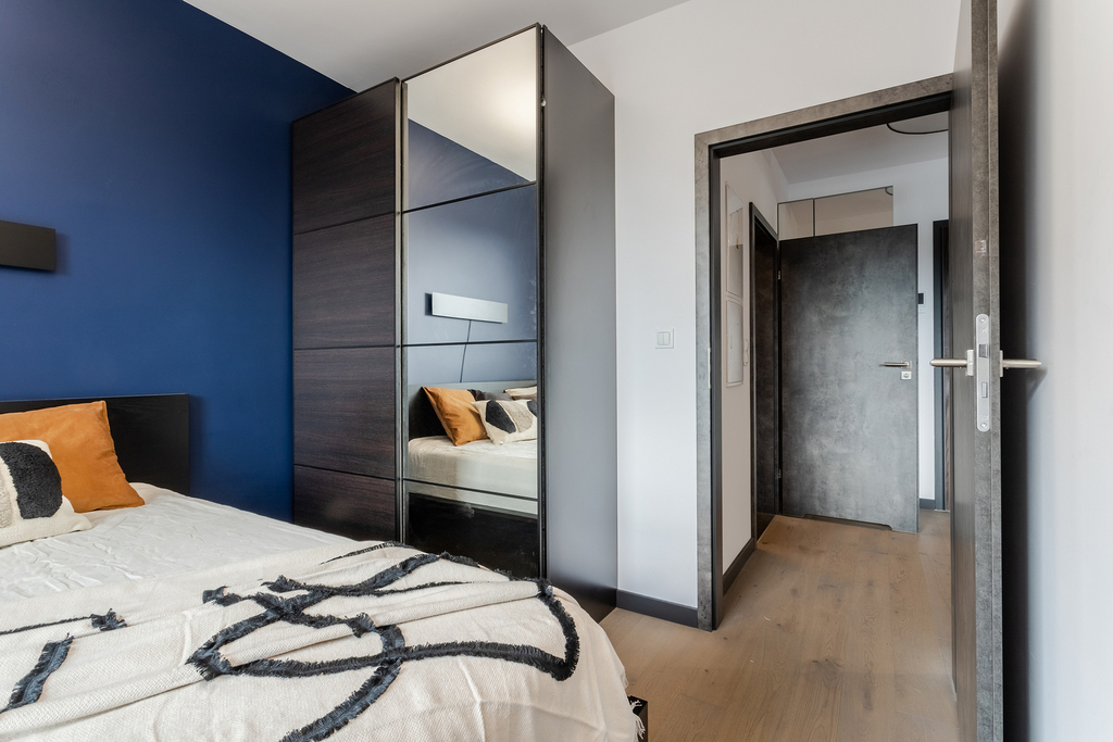– sypialni z dużym łóżkiem małżeńskim oraz szafą w zabudowie na wymiar