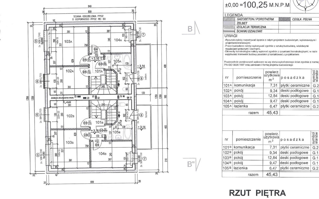 Piętro (pow. 45,43 m2, wysokość 2,7m), którego atutem jest brak skosów.