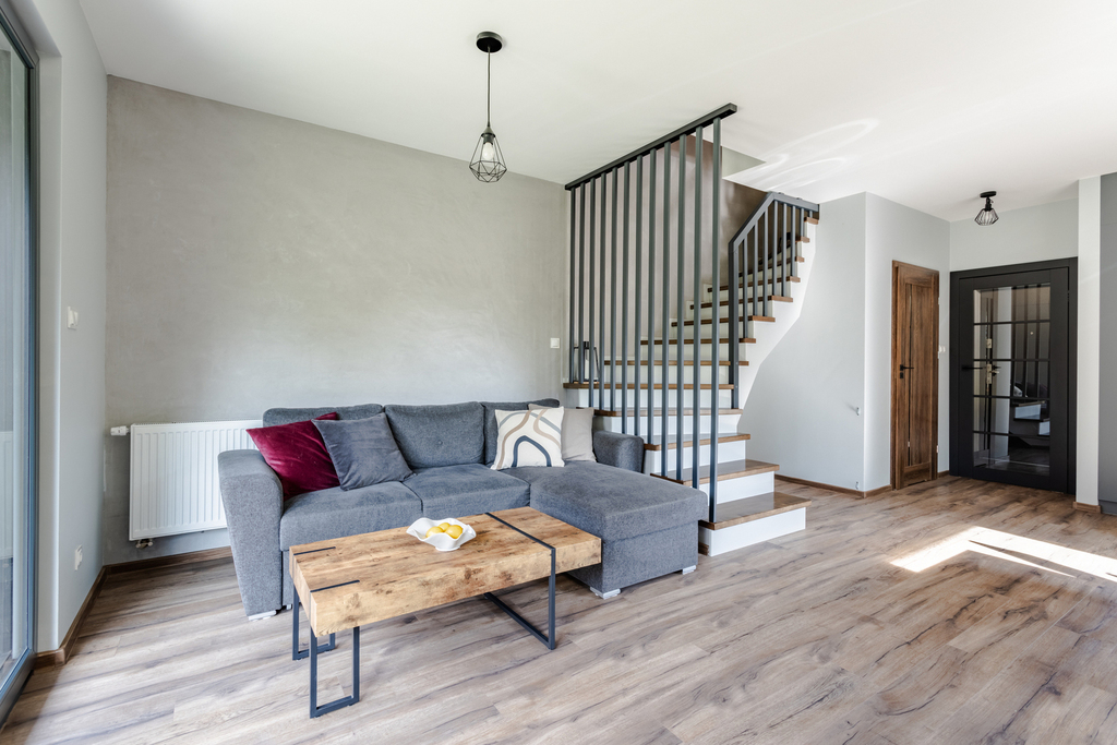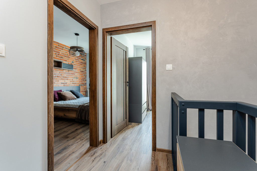– Klatka schodowa z betonem architektonicznym na ścianach o powierzchni 7,70 m²