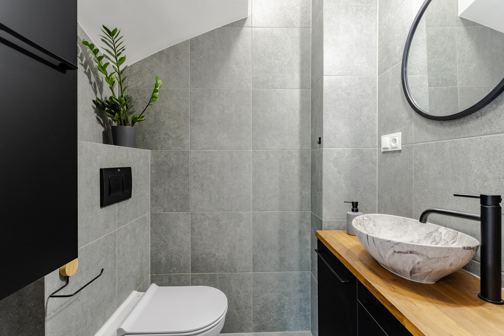 – WC z dębowym blatem o powierzchni 1,90 m²