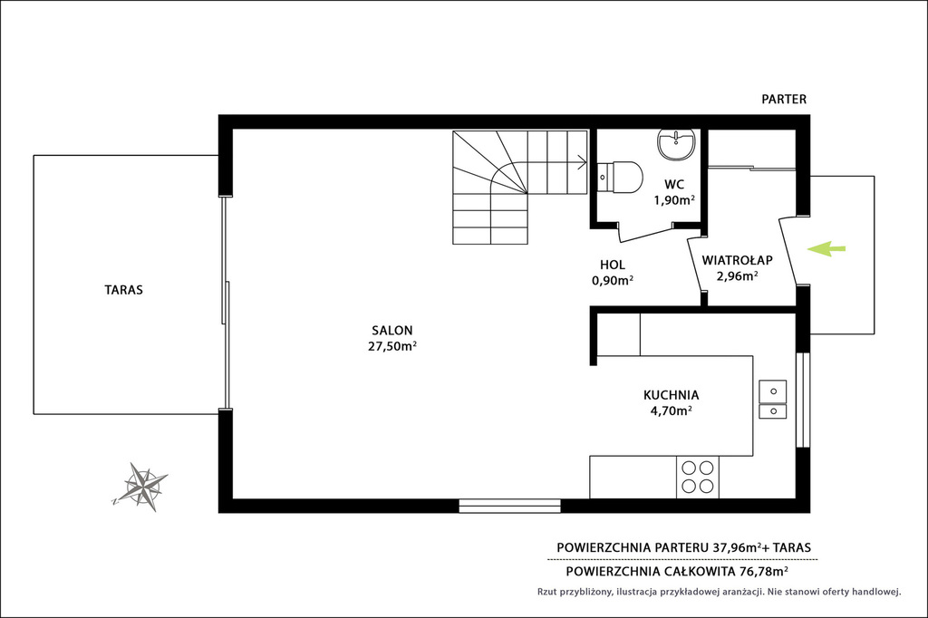 – Wiatrołap z pojemną szafą o powierzchni 2,96 m²