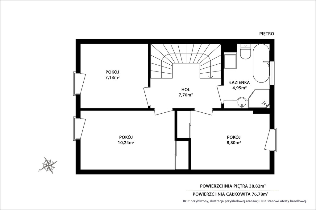 – Ocieplone grubą wełną poddasze z możliwością wykończenia i własnej aranżacji (niewliczane w metraż)