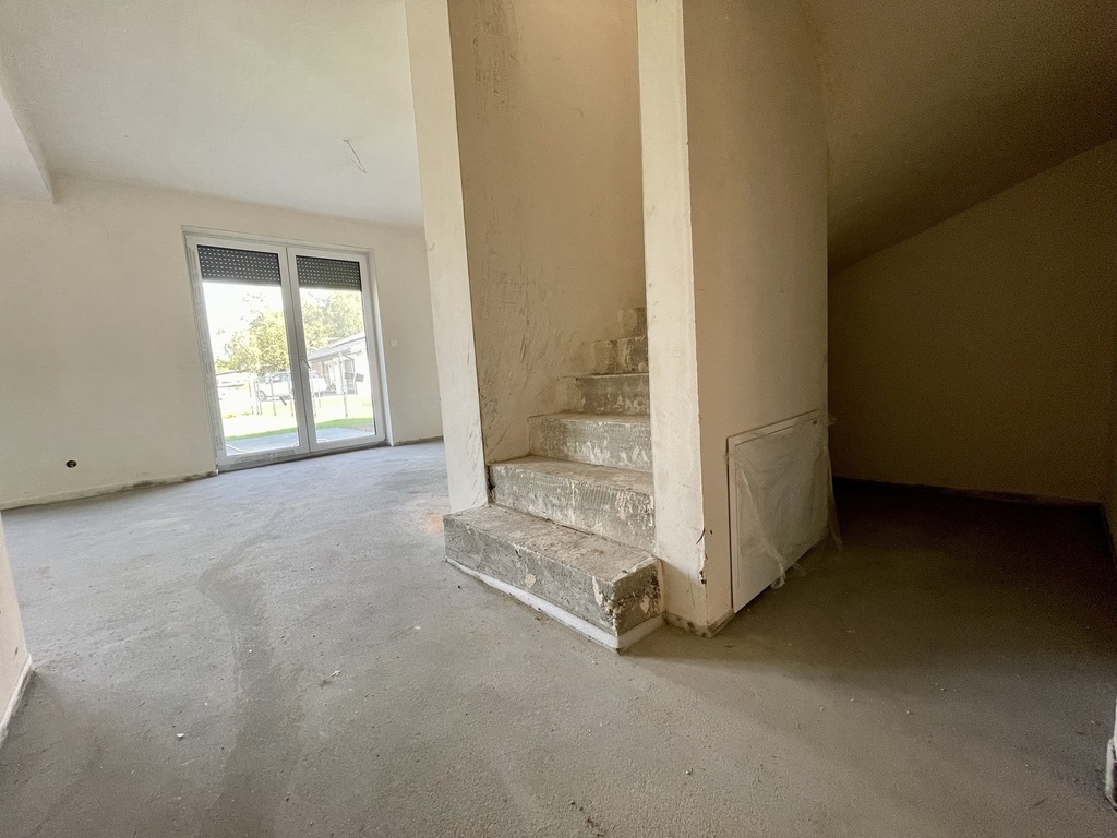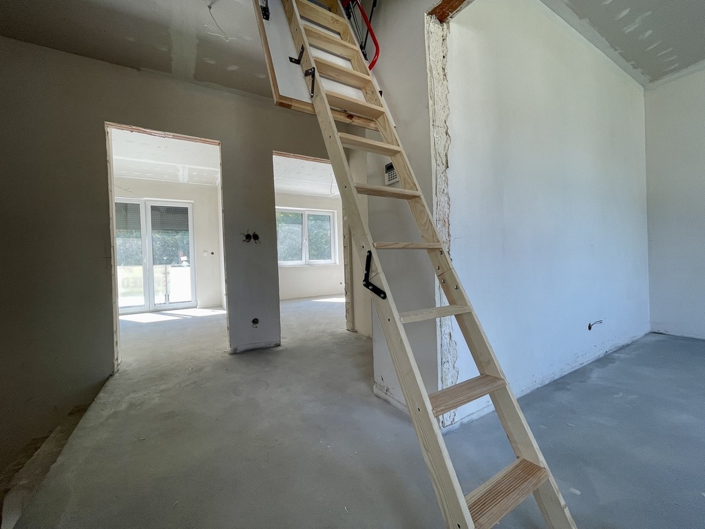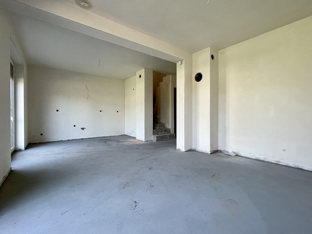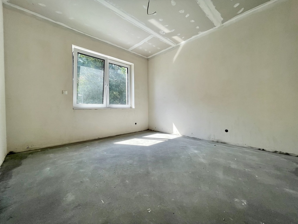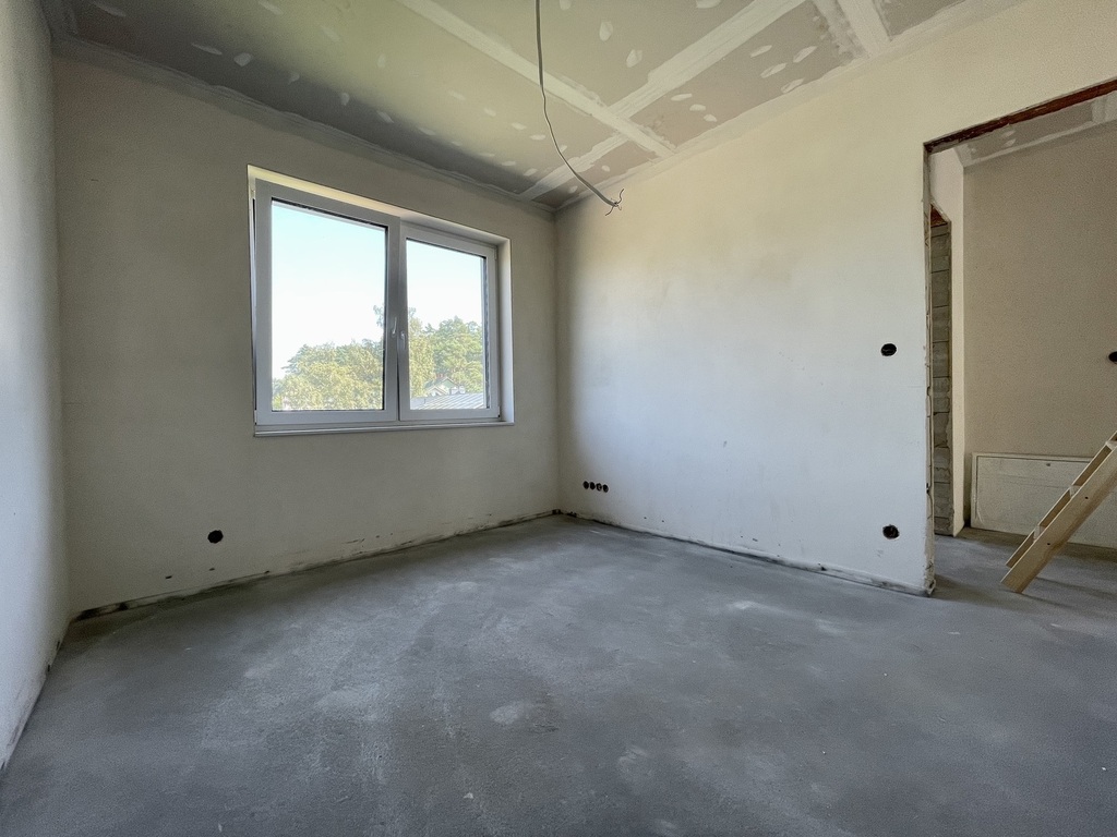 Budynek w stanie deweloperskim przygotowany z porothermu i ocieplony styropianem . Tynki maszynowe gipsowo-wapienne oraz posadzki maszynowe.