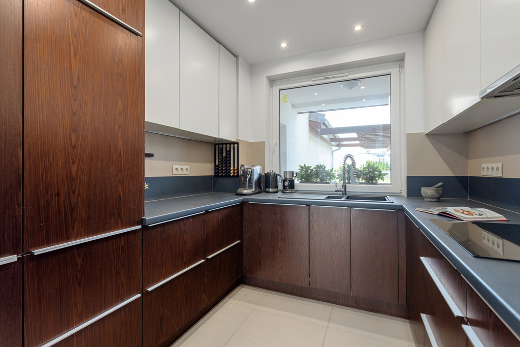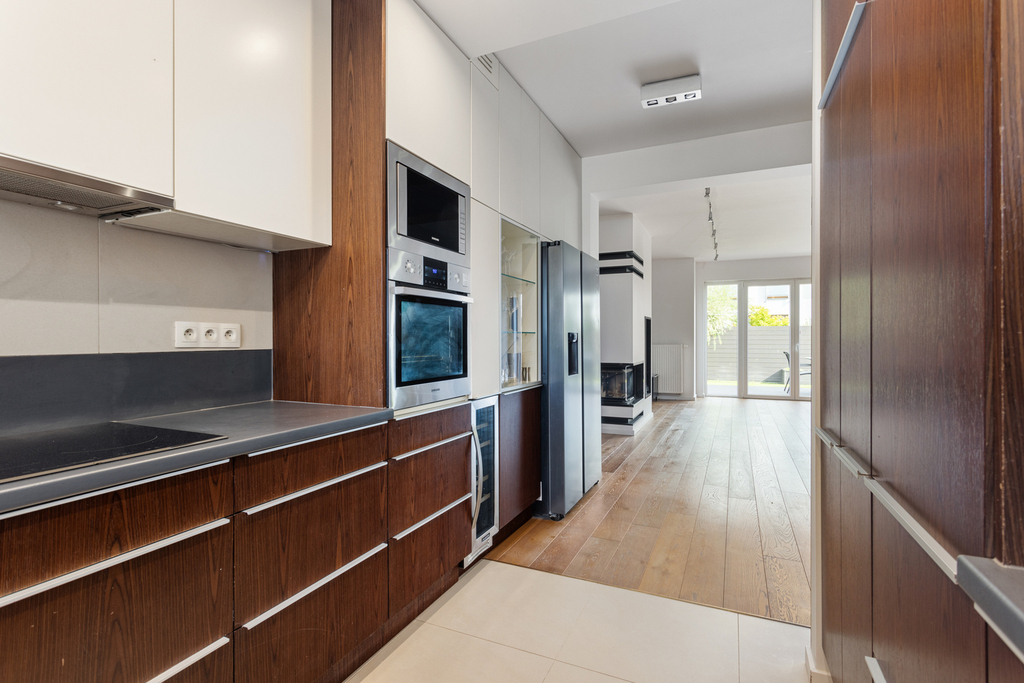 – Kuchnia wyposażona w lodówkę, piekarnik z funkcją parową i dual cook, płytę indukcyjną, dużą zmywarkę (60 cm), okap oraz mikrofalę. Zabudowa kuchni wykonana na wymiar z wysokiej jakości materiałów. AGD firmy Samsung za wyjątkiem zmywarki (Elektrolux)