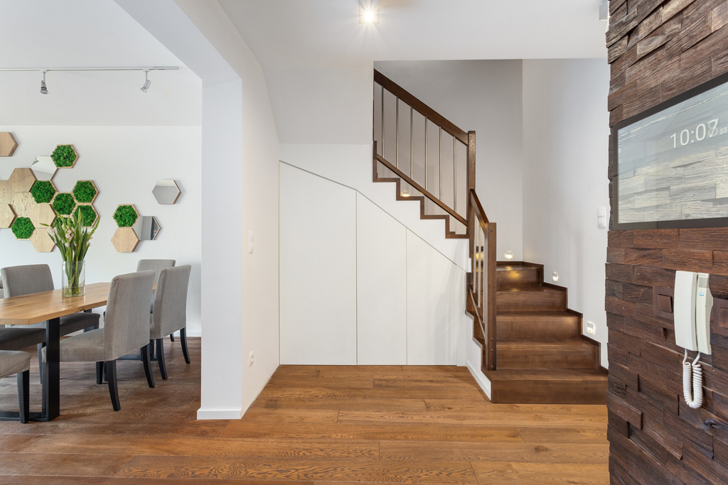 Nad piętrem znajduje się duże, ocieplone i klimatyzowane poddasze z pokojem o powierzchni użytkowej 13,71 m² (powierzchnia podłogi: 36,23 m²).
