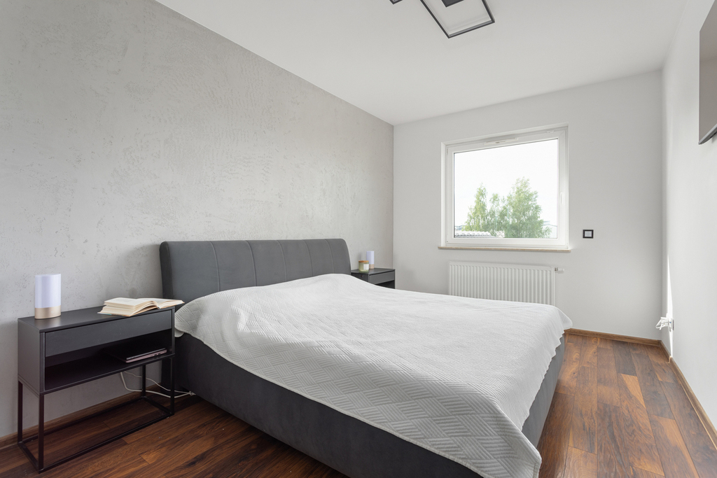 – Okna PCV z funkcją rozszczelnienia i szczeliną wentylacyjną, wyposażone w rolety.
