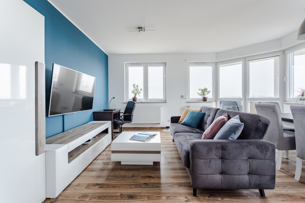 Mieszkanie jest bardzo jasne i przestronne. Na uwagę zasługuje duża ilość okien w salonie, dzięki czemu istnieje możliwość wydzielenia czwartego pokoju
