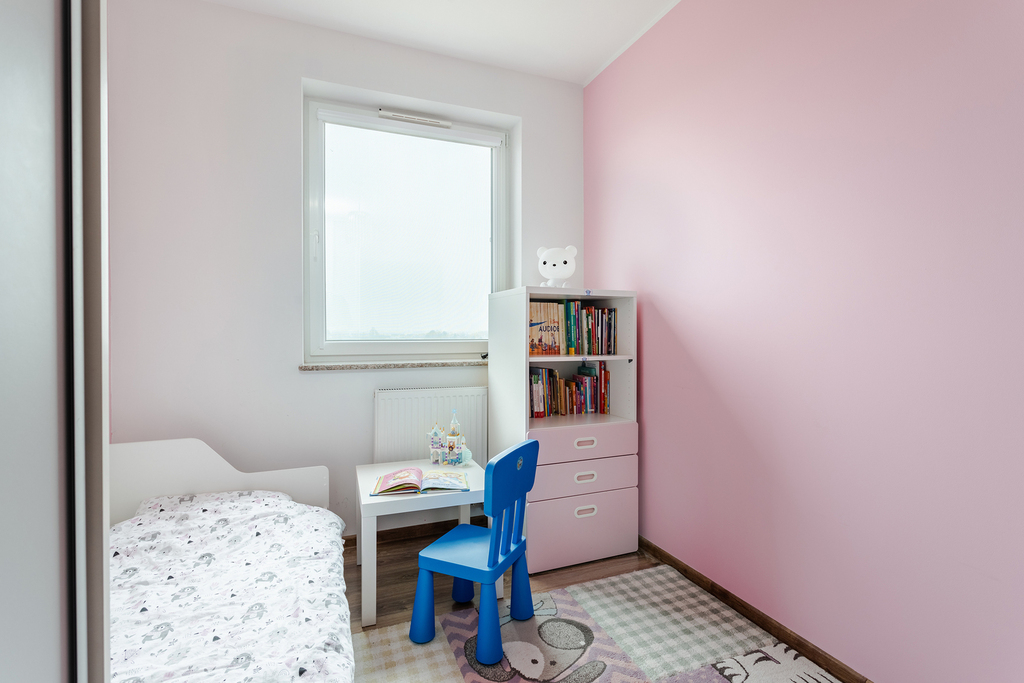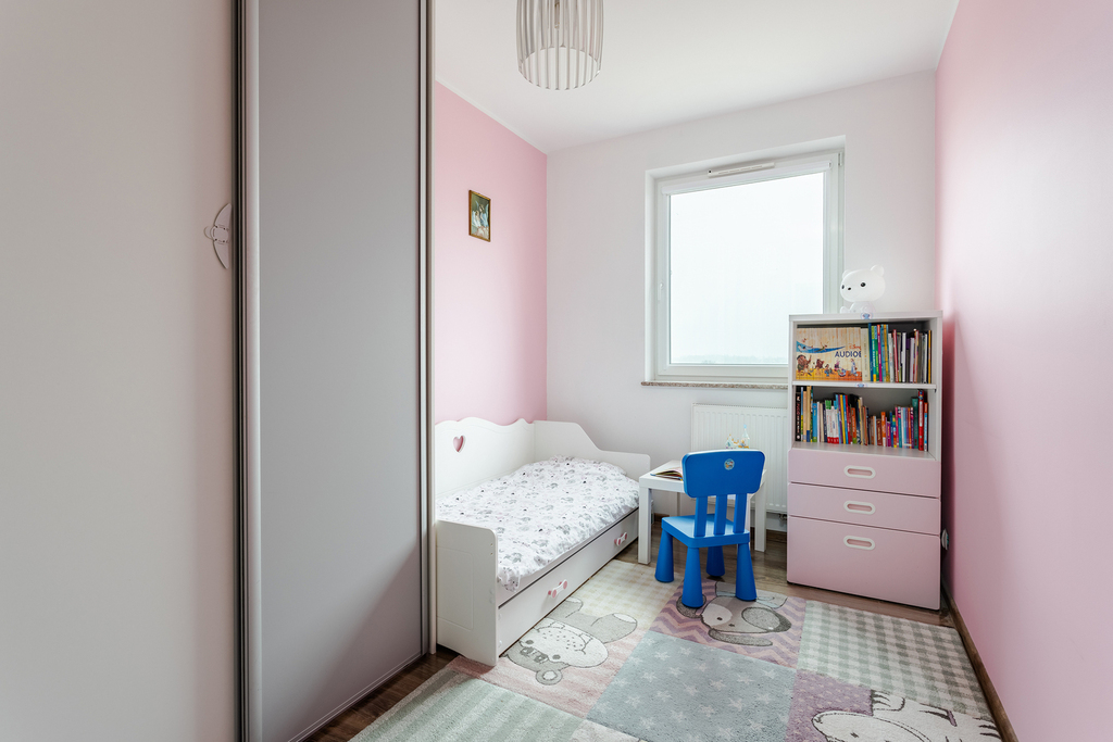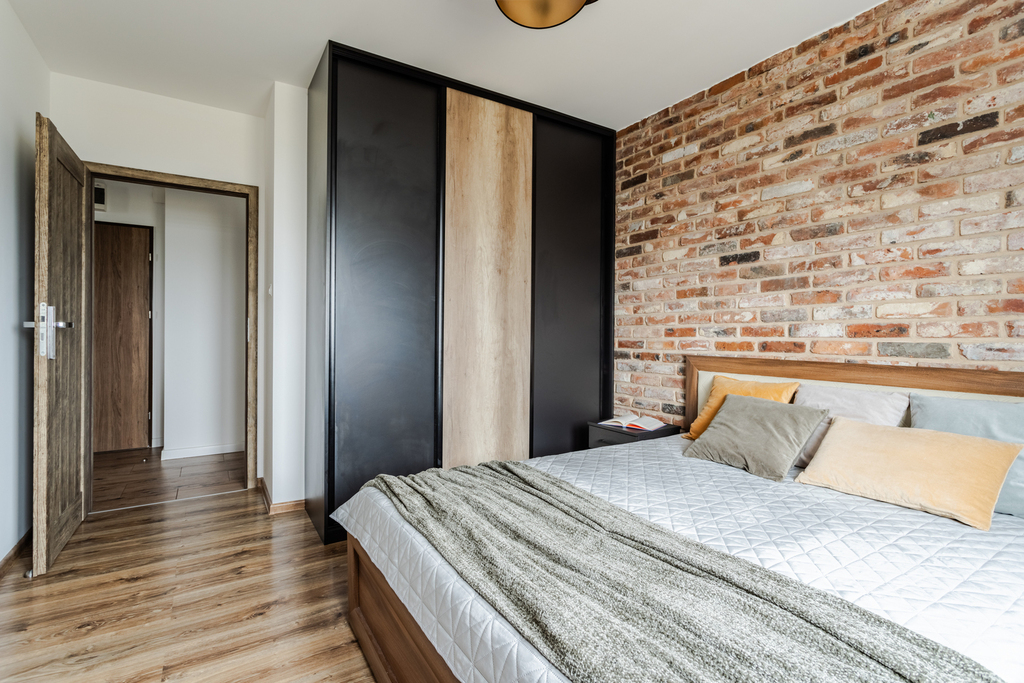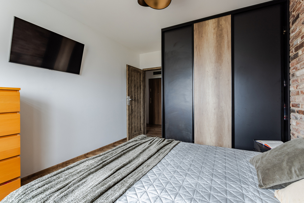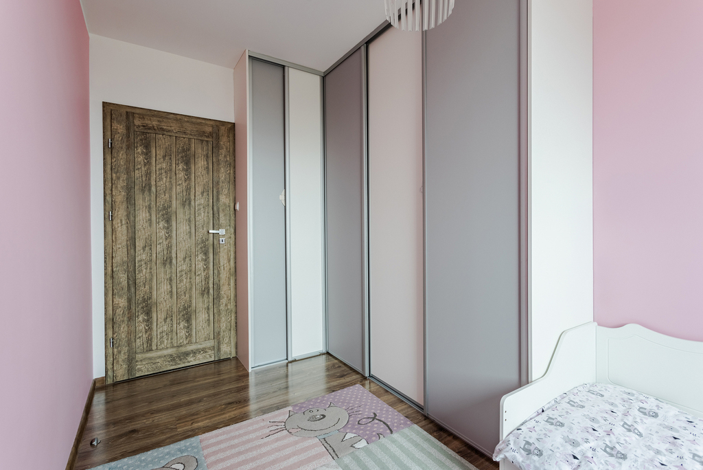 W dwóch pokojach sypialnianych znajdują się duże, zabudowane szafy na wymiar.