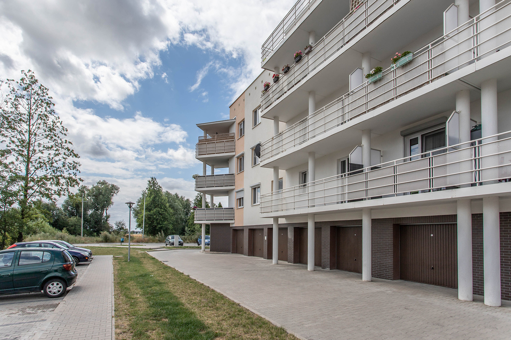 Na terenie osiedla znajduje się dużo ogólnodostępnych miejsc parkingowych, natomiast istnieje możliwość zakupu indywidualnego garażu w cenie 60 000zł (osobna KW).
