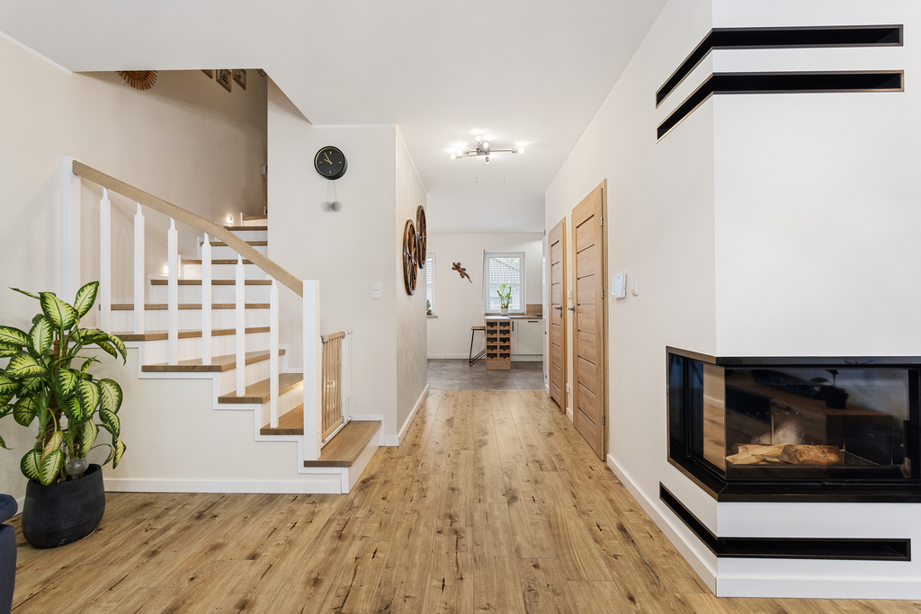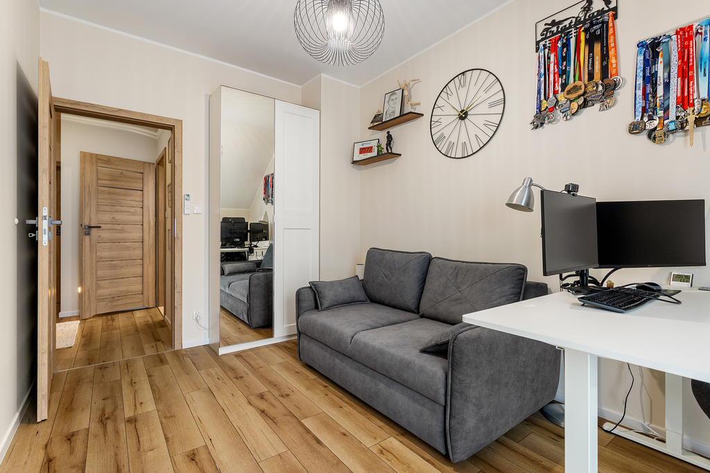 Dom został wykończony w wysokim standardzie, z dbałością o każdy detal, a jego przemyślany układ oraz nowoczesne wykończenie sprawiają, że jest to miejsce gotowe do zamieszkania bez konieczności ponoszenia dodatkowych nakładów.