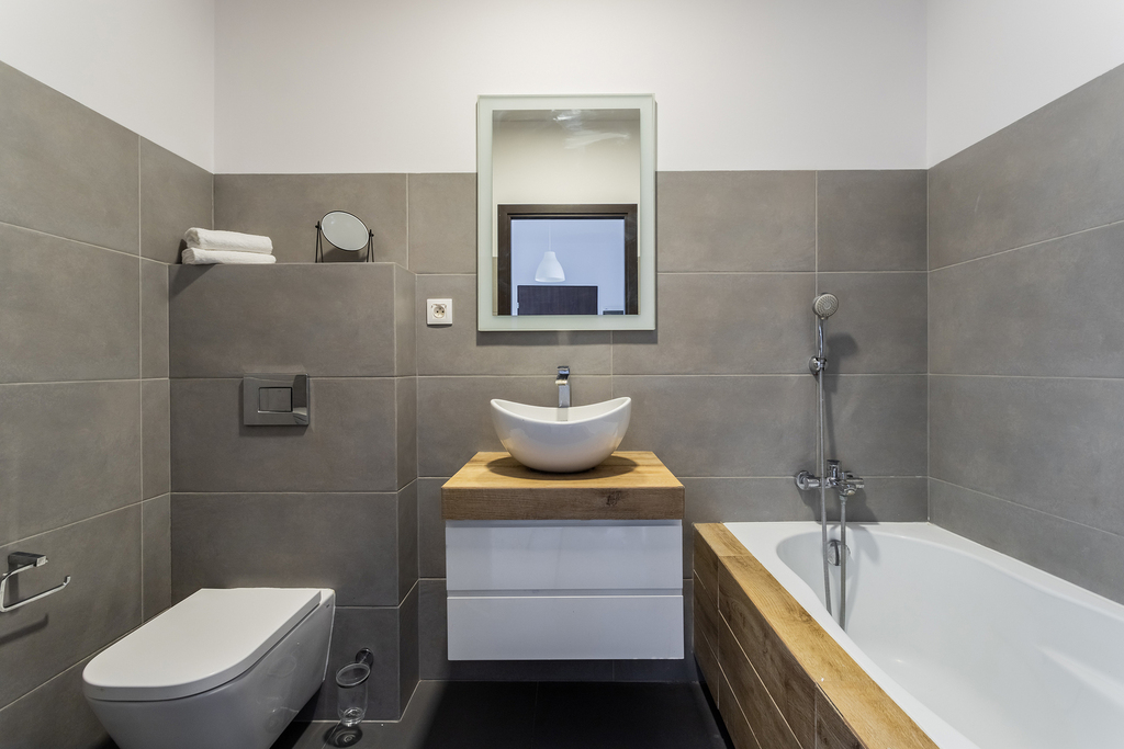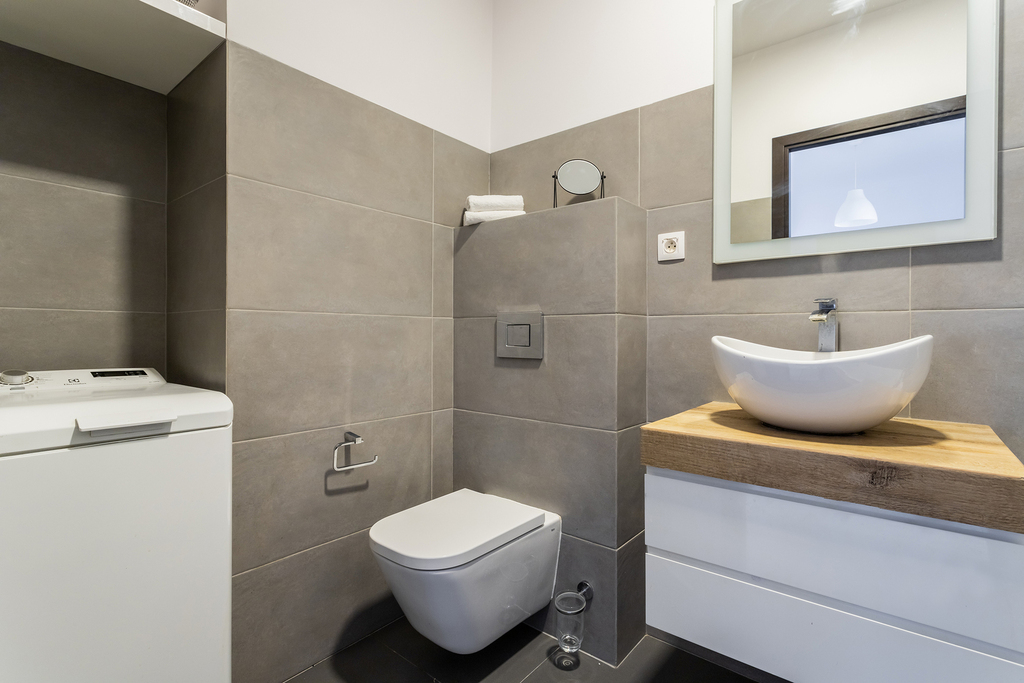 – łazienki z pralką, umywalką, WC oraz wanną.
