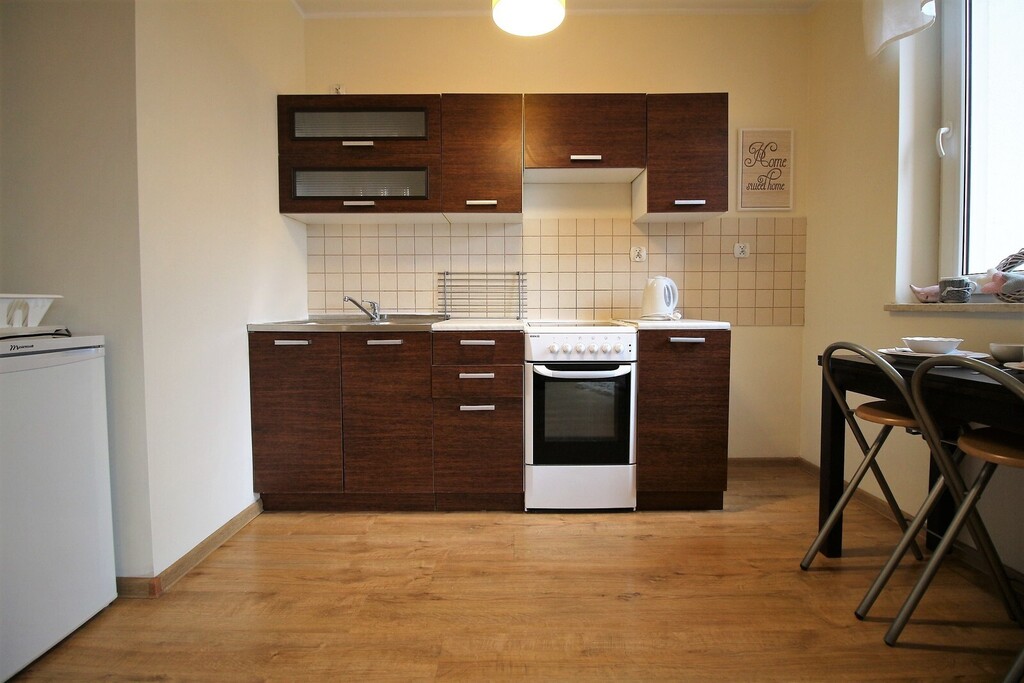 – aneksu kuchennego wyposażonego w sprzęt AGD ( lodówka oraz piekarnik na prąd wraz z płytą grzewczą na prąd )