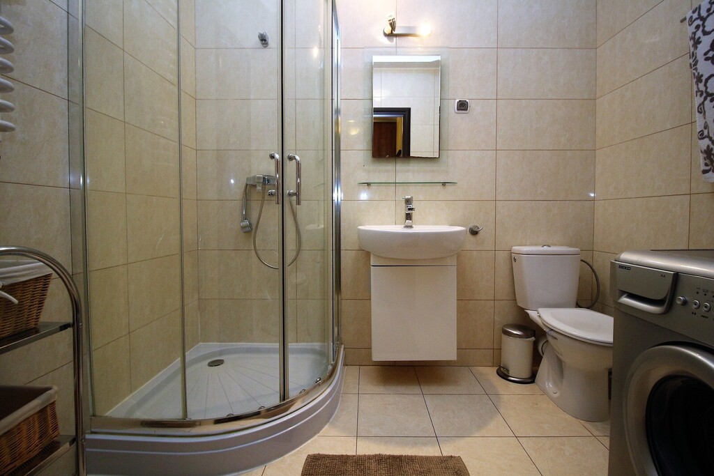 – łazienki z kabiną prysznicową ,WC,umywalką i pralką