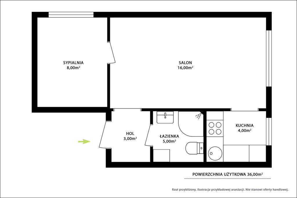 Skład mieszkania o pow. 36,00 m²: