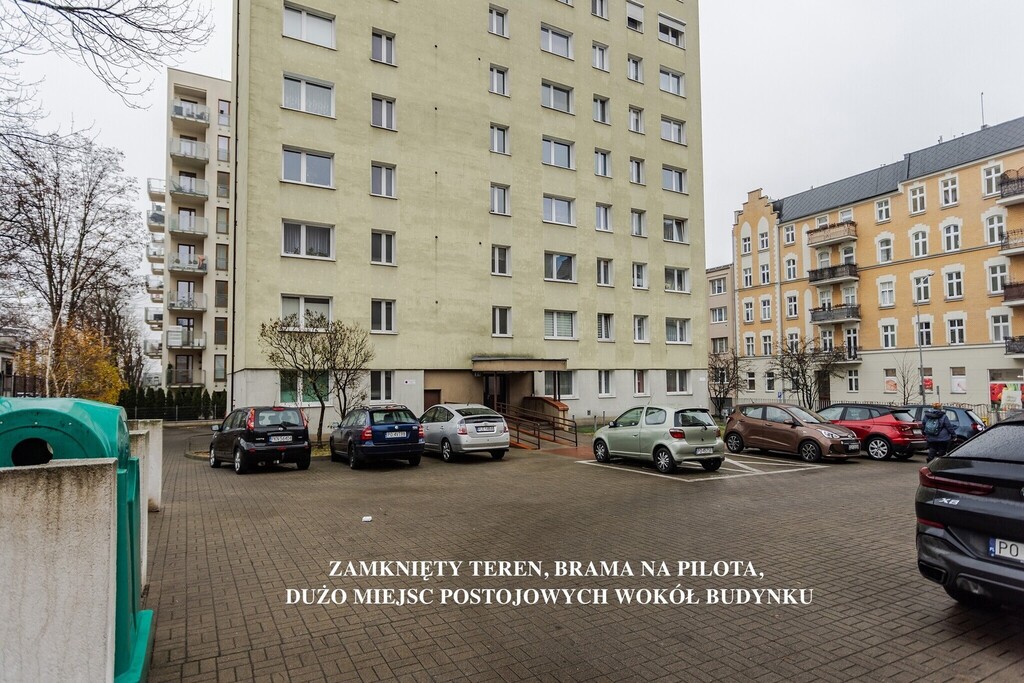 Darmowy parking na zamkniętym terenie wokół budynku. Bez większych problemów ze znalezieniem miejsca o każdej porze dnia. Brama sterowana pilotem.