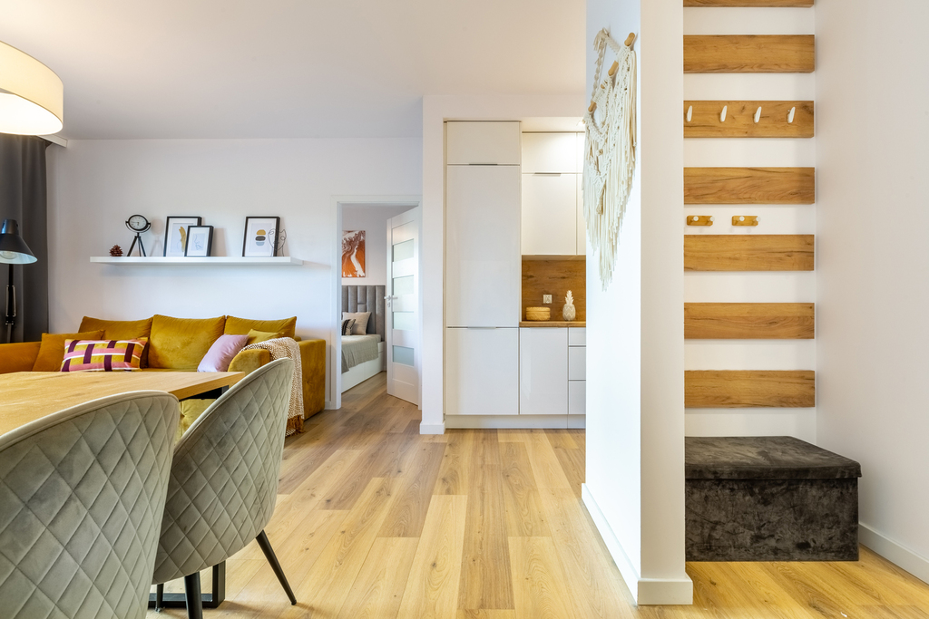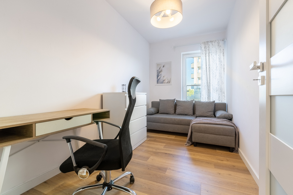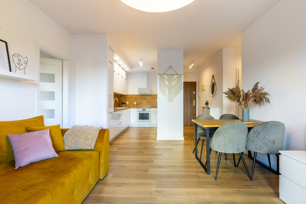 Jest to układ bardzo funkcjonalny i przestronny, który może posłużyć zarówno rodzinie, jak osobom pracującym zdalnie.