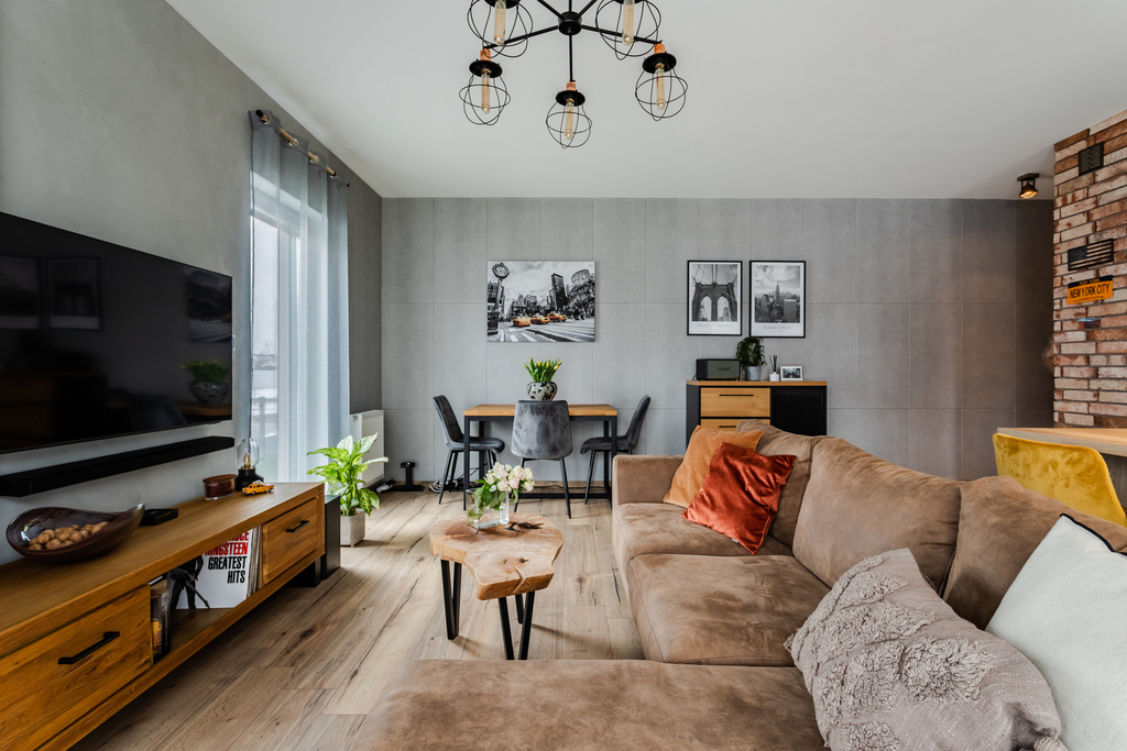 – salonu – w pełni umeblowany łącznie z TV QLED + kino domowe