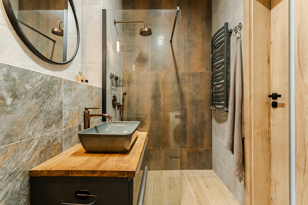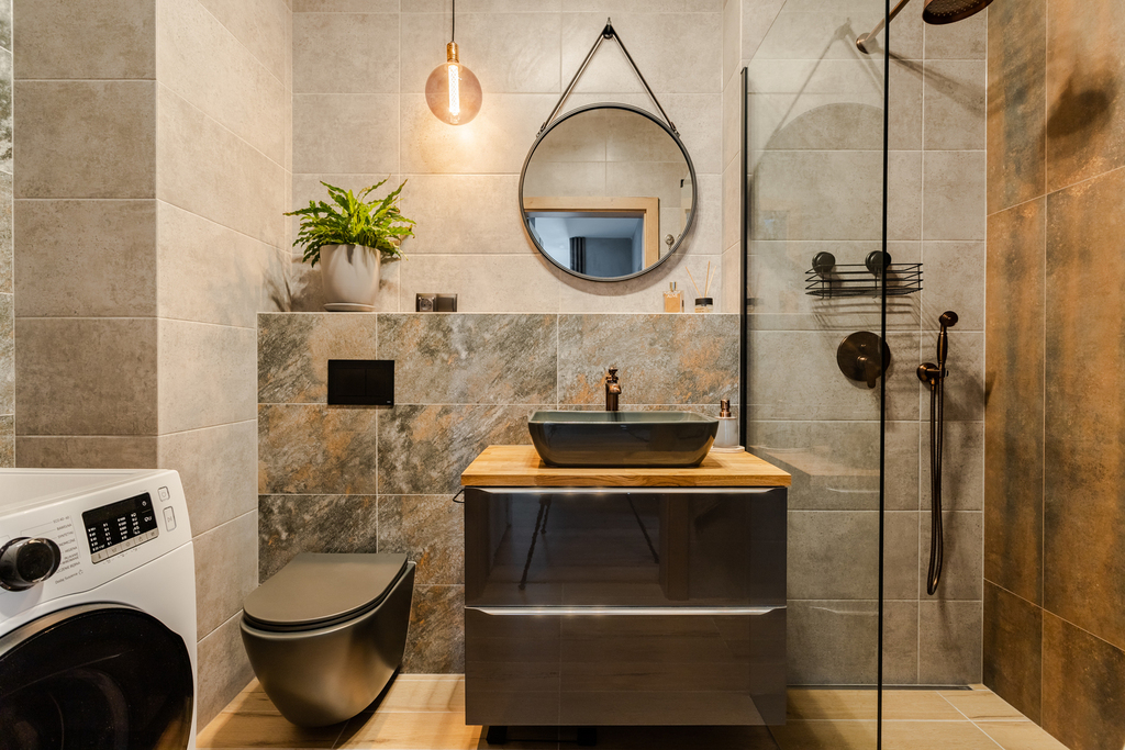 – łazienki z prysznicem typu walk-in , umywalką, pralko-uszarką oraz WC ( armatura renomowanej firmy Omnires Art Deco )