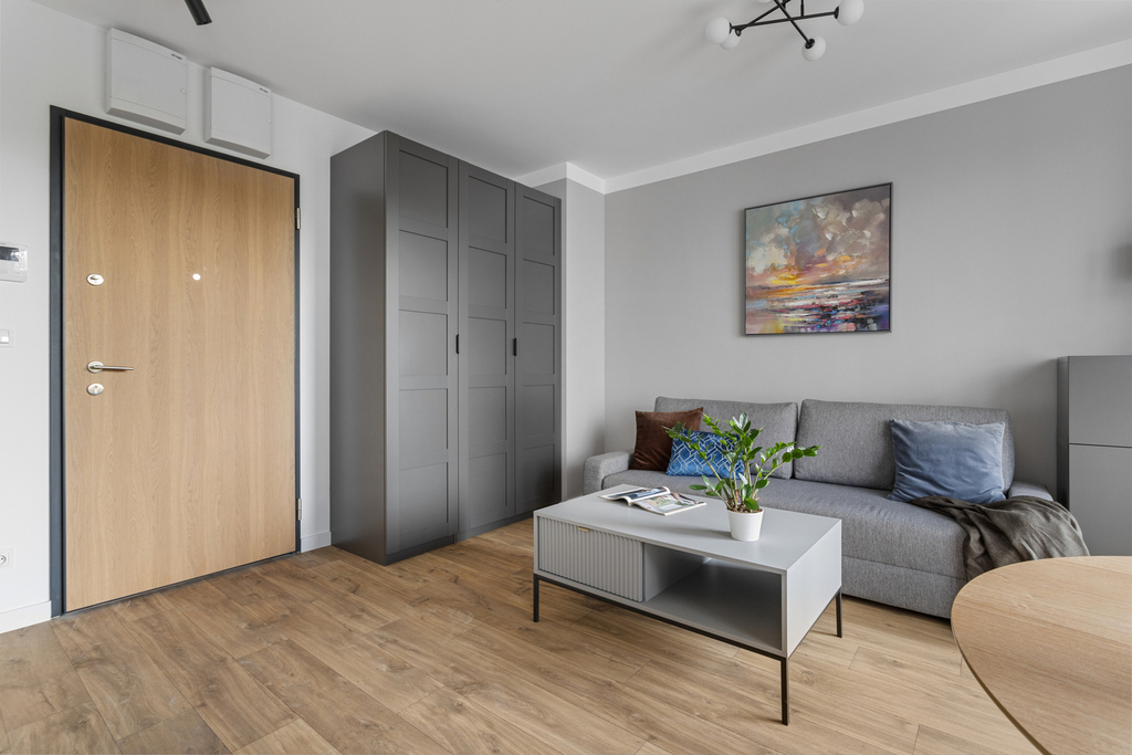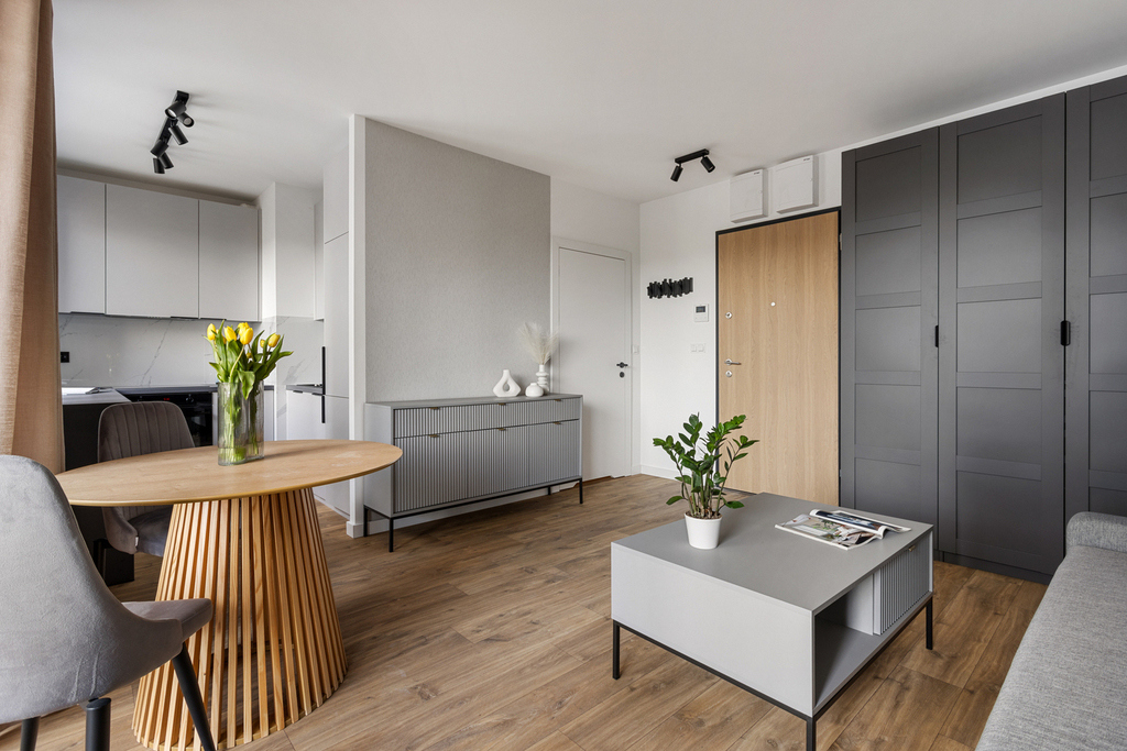 Przestronne wnętrze! Mieszkanie oferuje dużo przestrzeni przy niedużym metrażu, indywidualny projekt zakładał wykorzystanie przestrzeni z naciskiem na ergonomię wnętrza z wykorzystaniem dużej ilości miejsc na przechowywanie