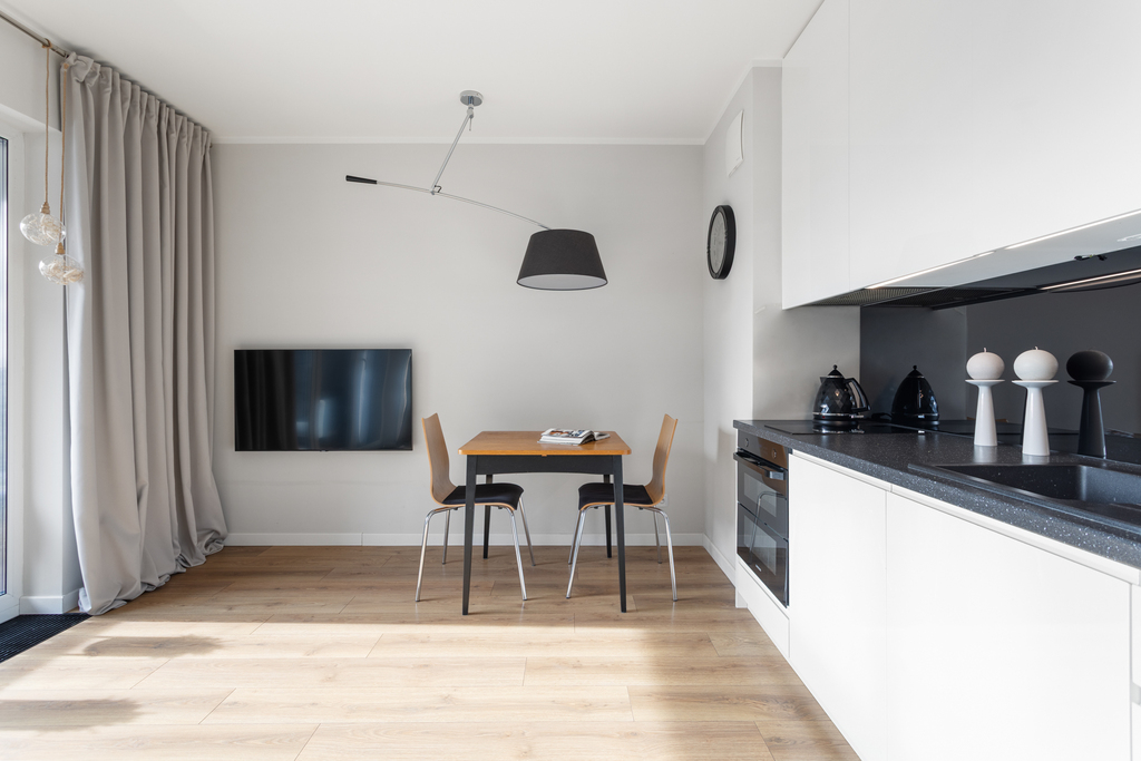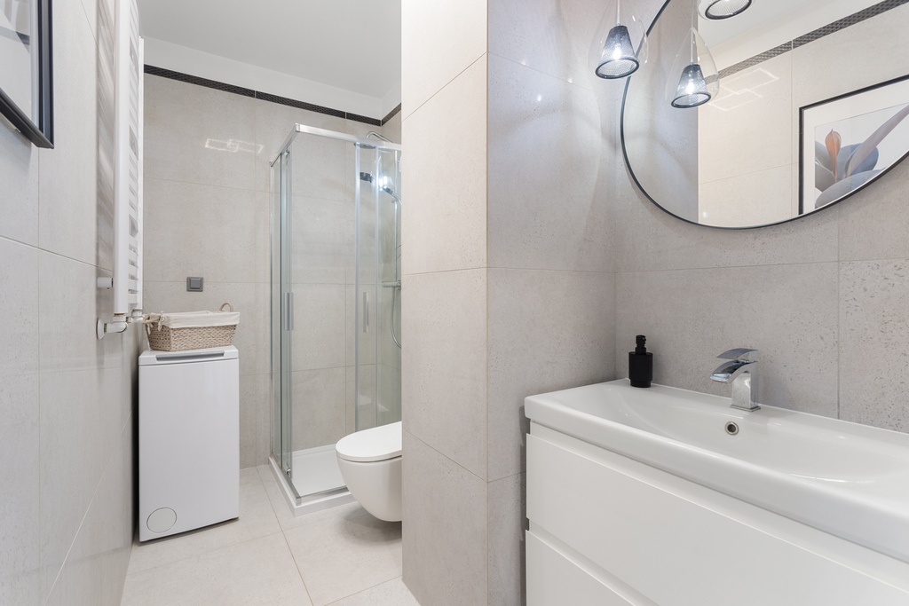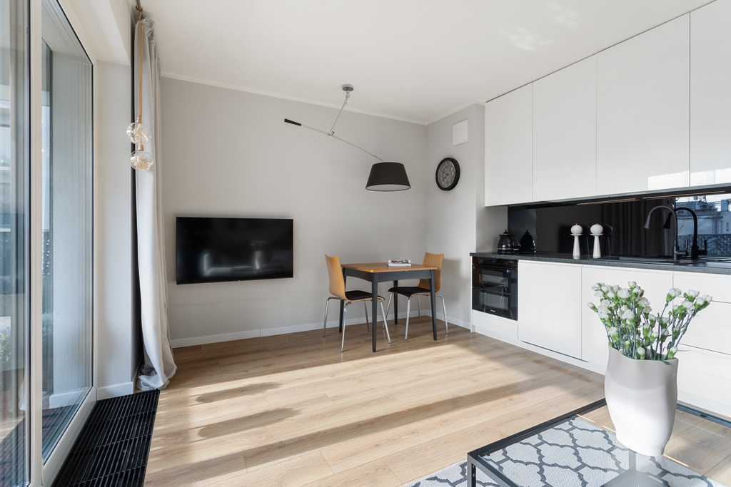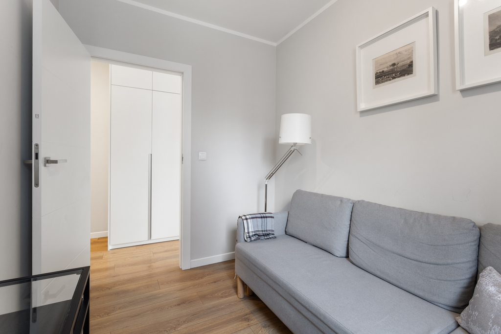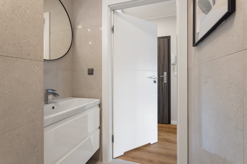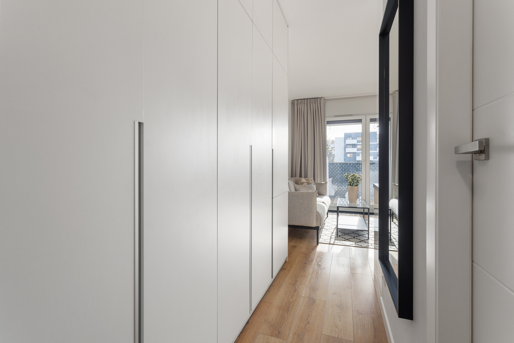 Wnętrze zostało zaprojektowane indywidualnie, z naciskiem na ergonomię oraz maksymalne wykorzystanie przestrzeni. Mimo kompaktowego metrażu mieszkanie jest wyjątkowo funkcjonalne i oferuje dużą ilość miejsc do przechowywania. Całość jest spójna, nowoczesna i gotowa do wprowadzenia od zaraz – bez dodatkowych nakładów finansowych.