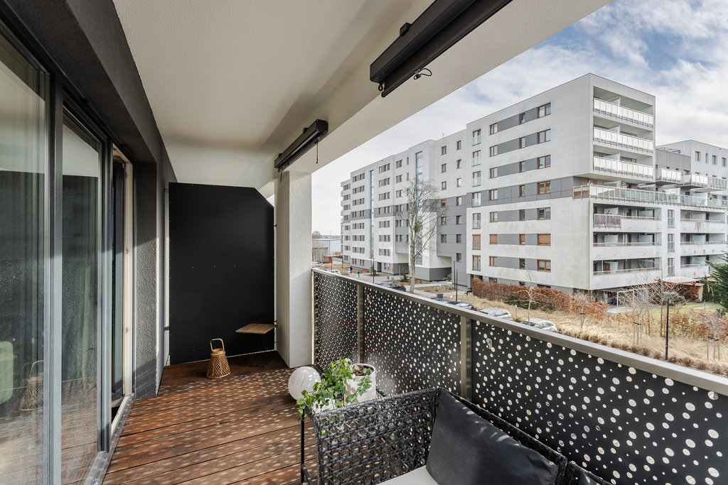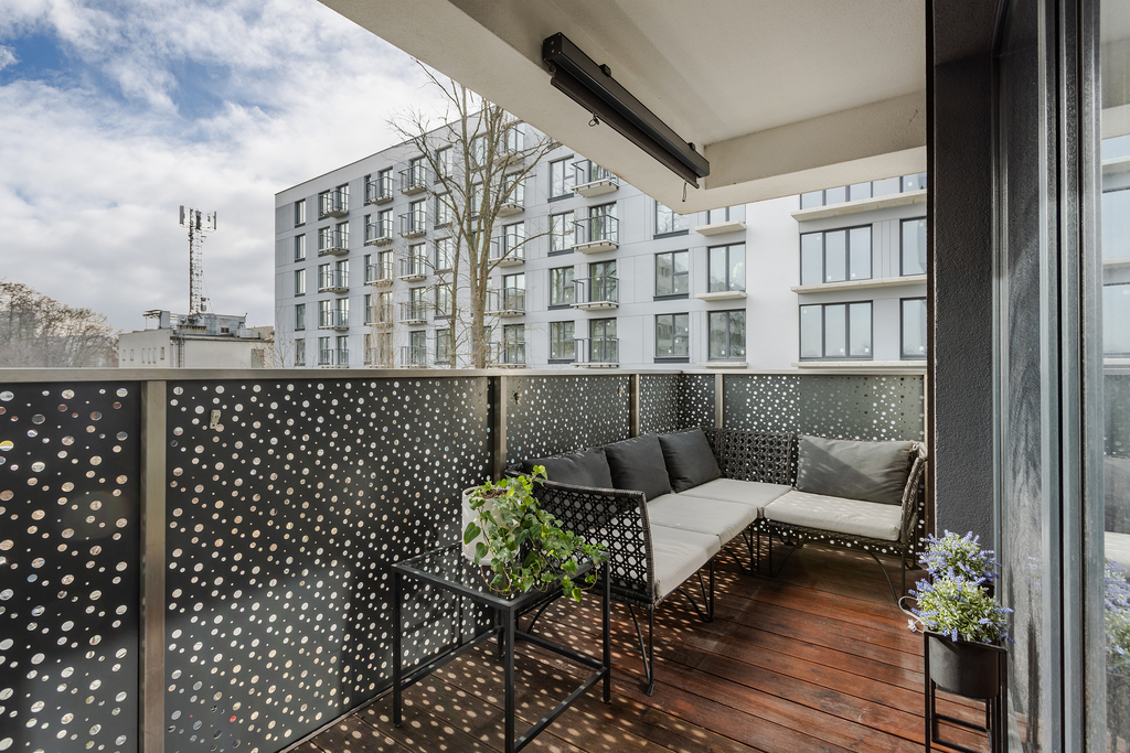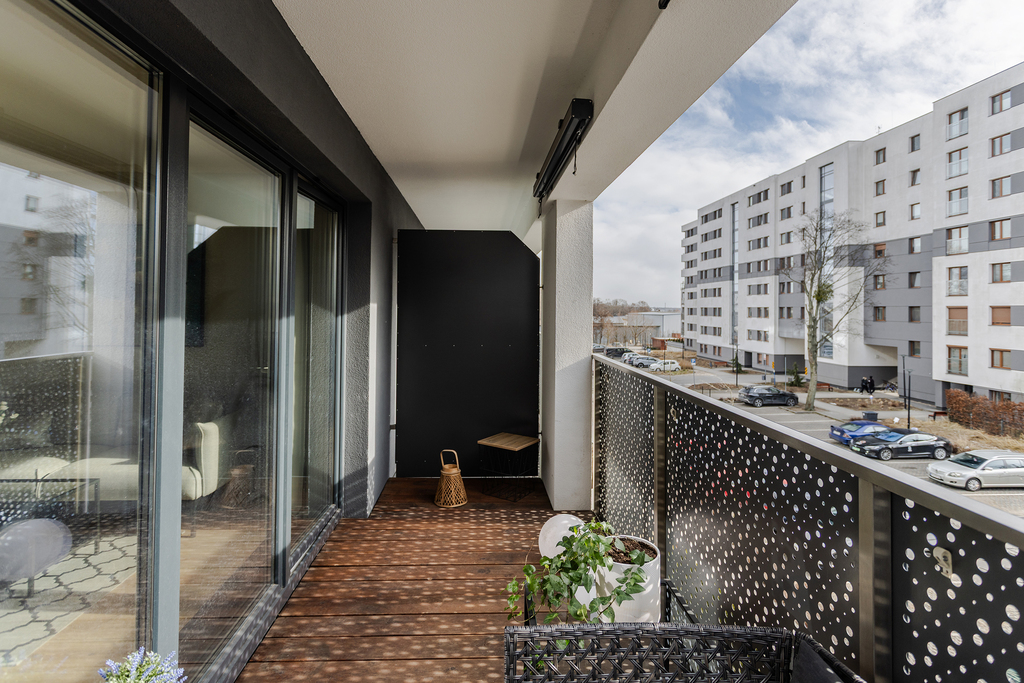 • przestronny balkon – ok. 12 m² (wykończony drewnianym parkietem)
