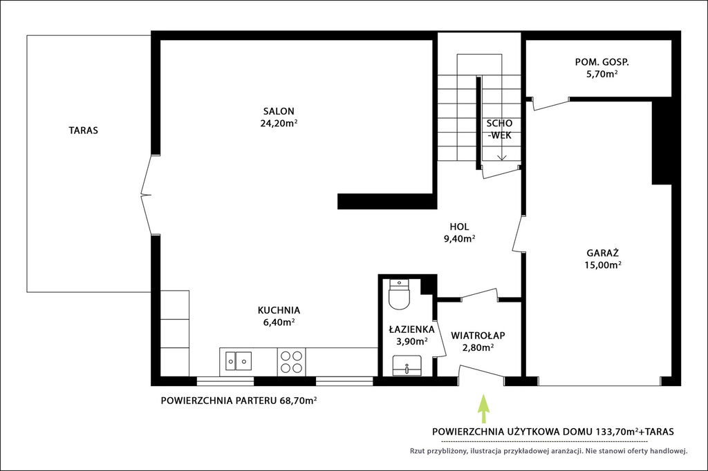• Powierzchnia domu: 133,70 m²