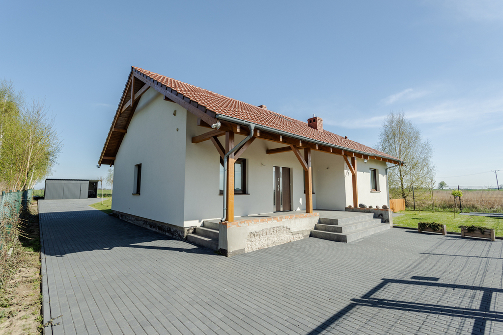 Zapraszam do zapoznania się z ofertą sprzedaży nowoczesnego, wolnostojącego domu parterowego, położonego na dużej i zadbanej działce o powierzchni 1000 m².
