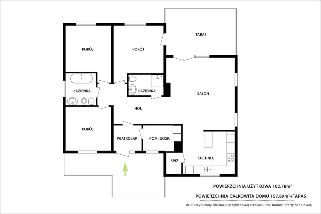 – Przemyślany układ: salon z kuchnią, 3 sypialnie, dodatkowe 2 pomieszczenia gospodarcze