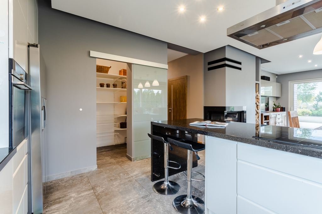 – kuchnia ( ok 11,5 m2 ) wraz ze spiżarnią ( ok 3,5 m2 ) Kuchnia wyposażona w meble na zamówienie , blaty granitowe , sprzęt AGD wysokiej klasy ( płyta i piekarnik Siemens, zmywarka Whirpool , lodówka Samsung )