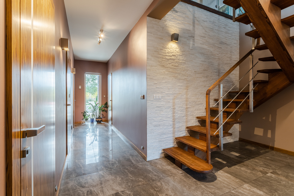 Ogrzewanie podłogowe na całym parterze + łazienka na piętrze.