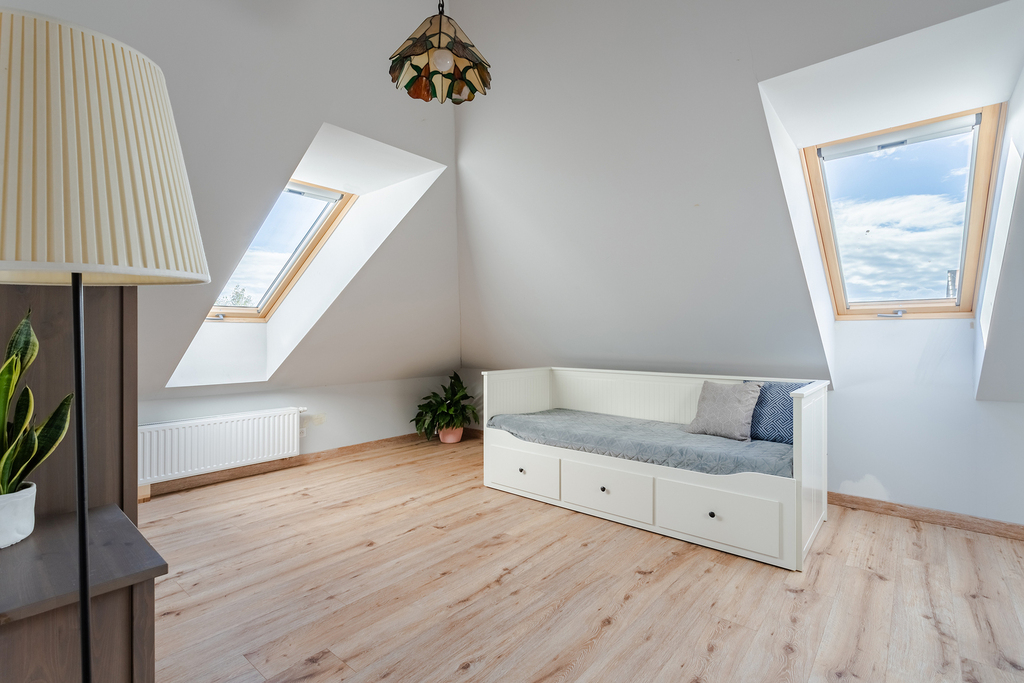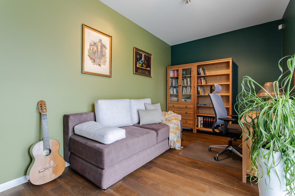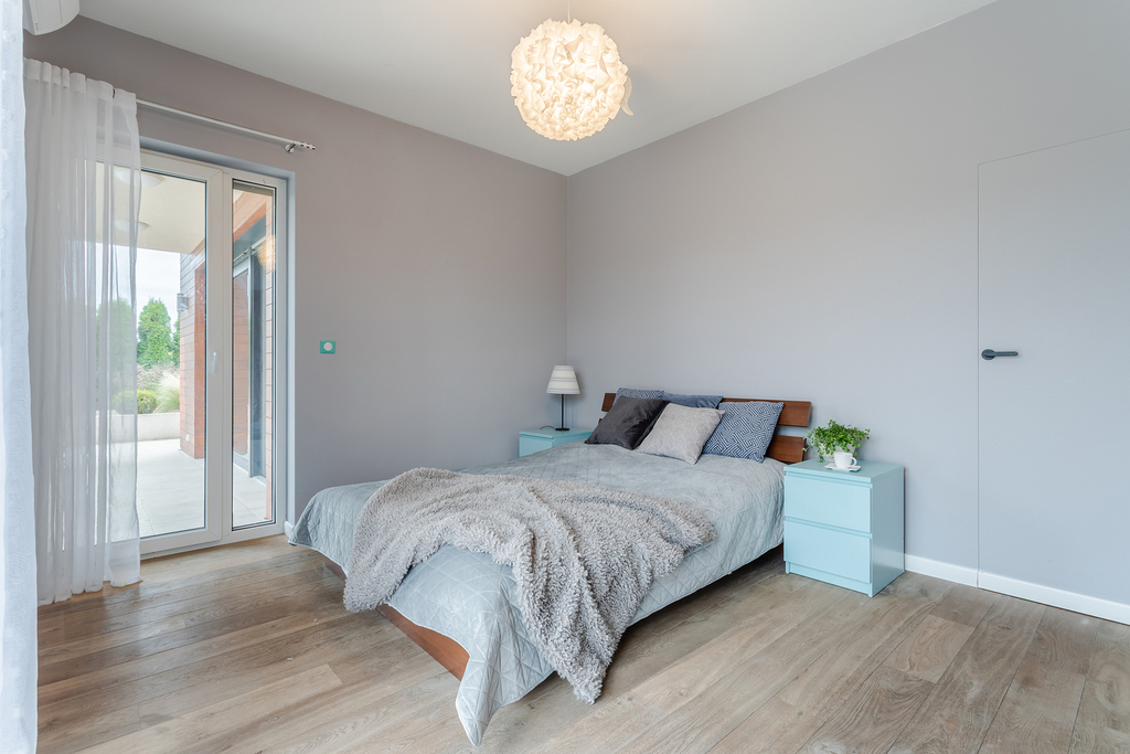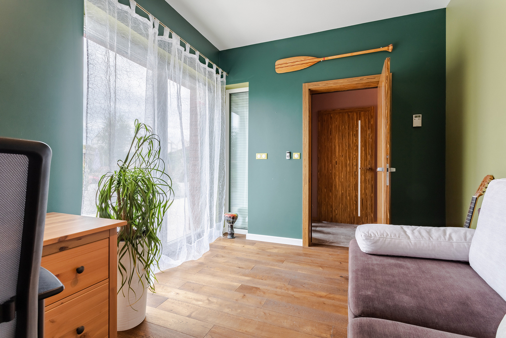– pokój nr 1 ( ok 20 m2 ) Sypialnia z wyjściem na ogród oraz z garderobą oddzieloną dodatkowymi drzwiami +zainstalowana klimatyzacja .
