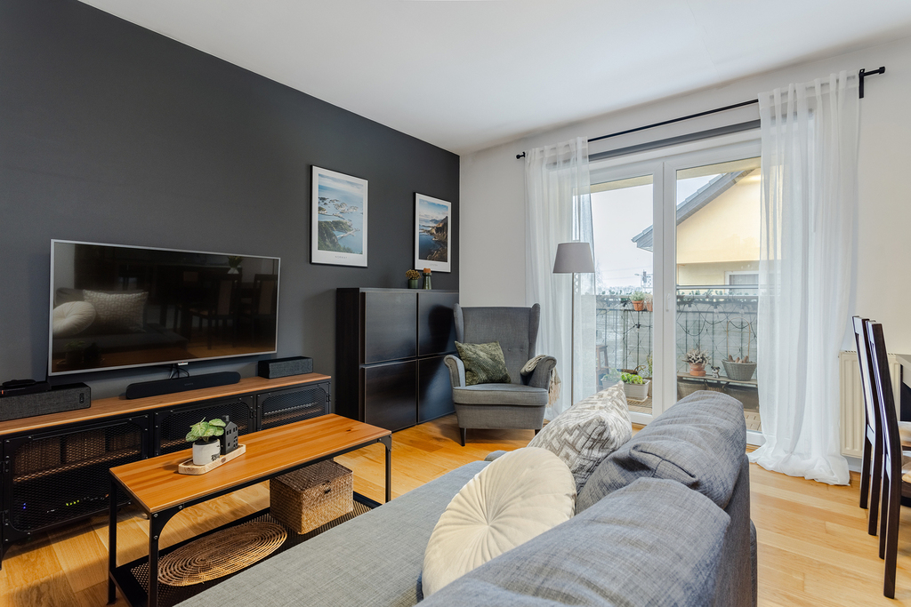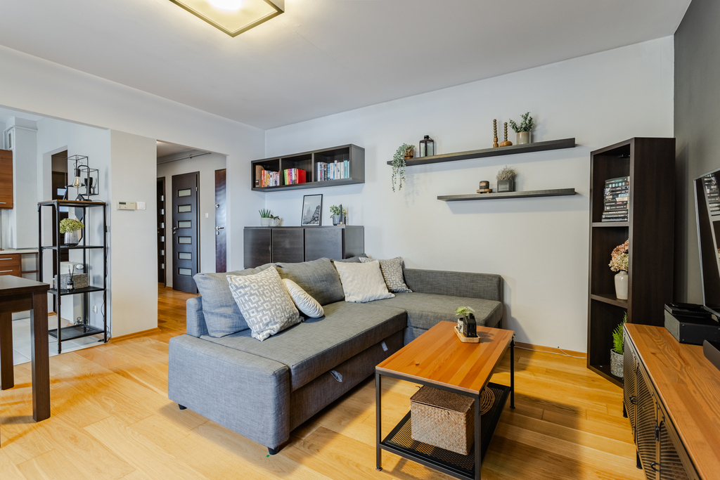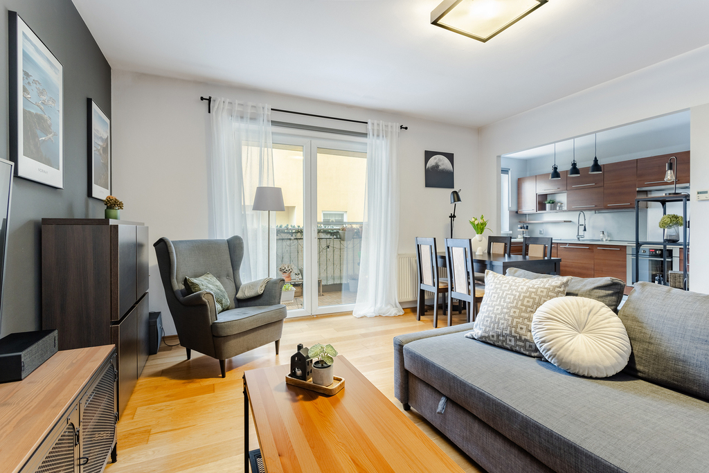 • Liczba pokoi: 3 (dwie sypialnie oraz salon z aneksem)