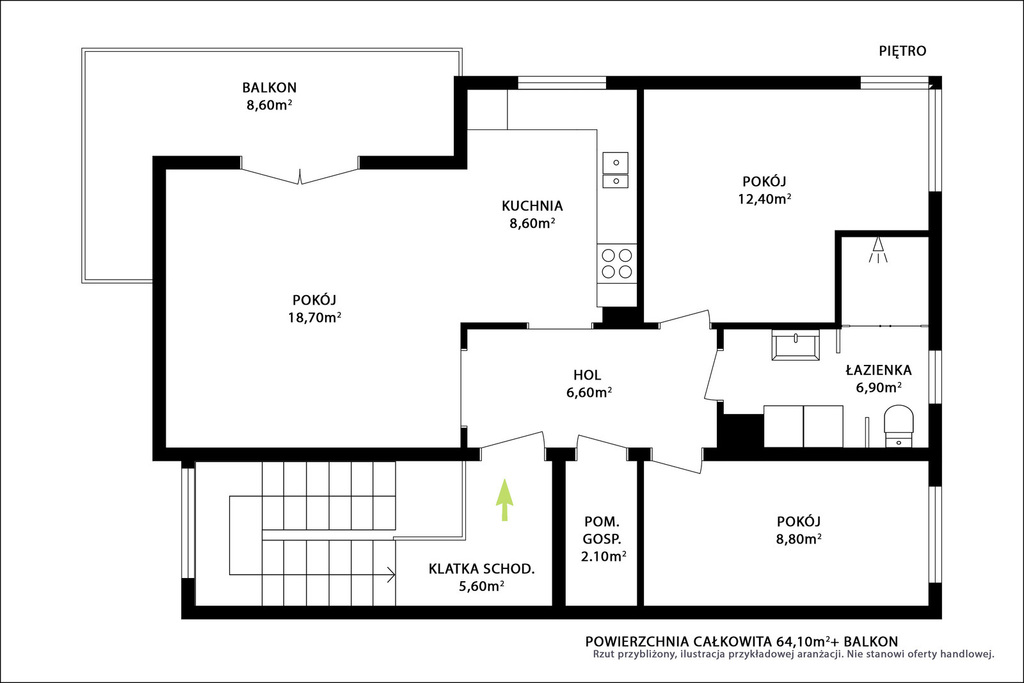 • Powierzchnia: 64,10 m²