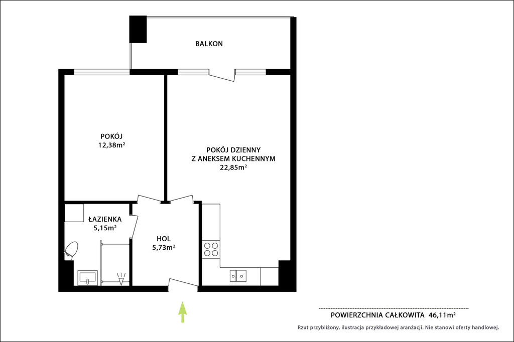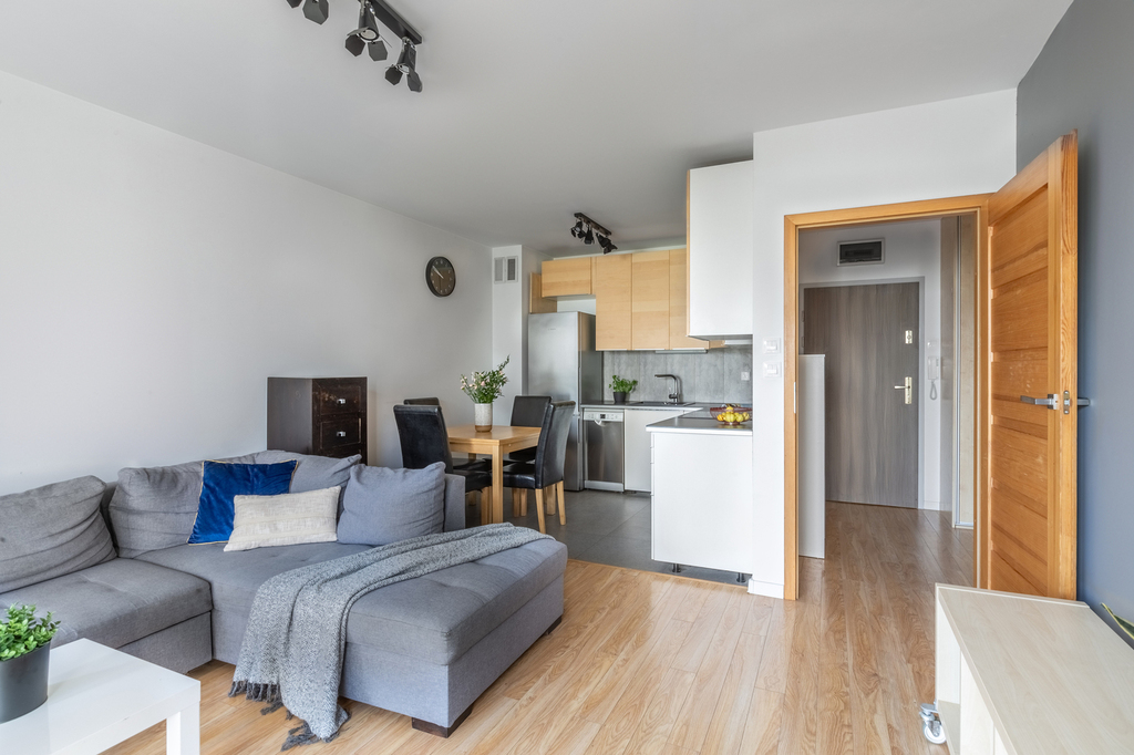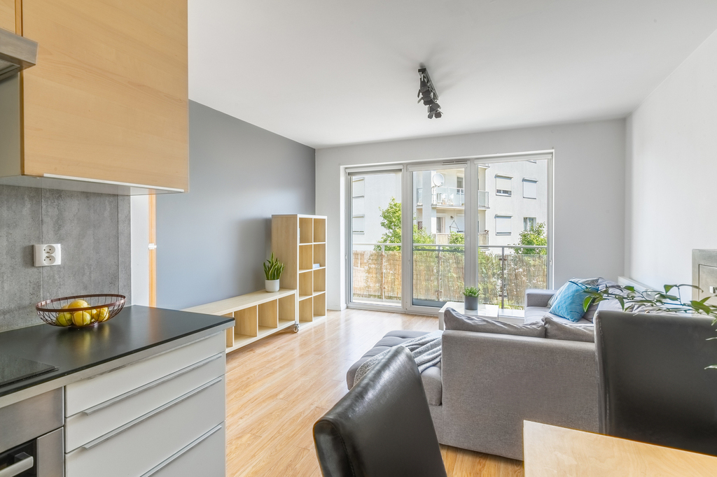 – salon z aneksem kuchennym i wyjściem na balkon