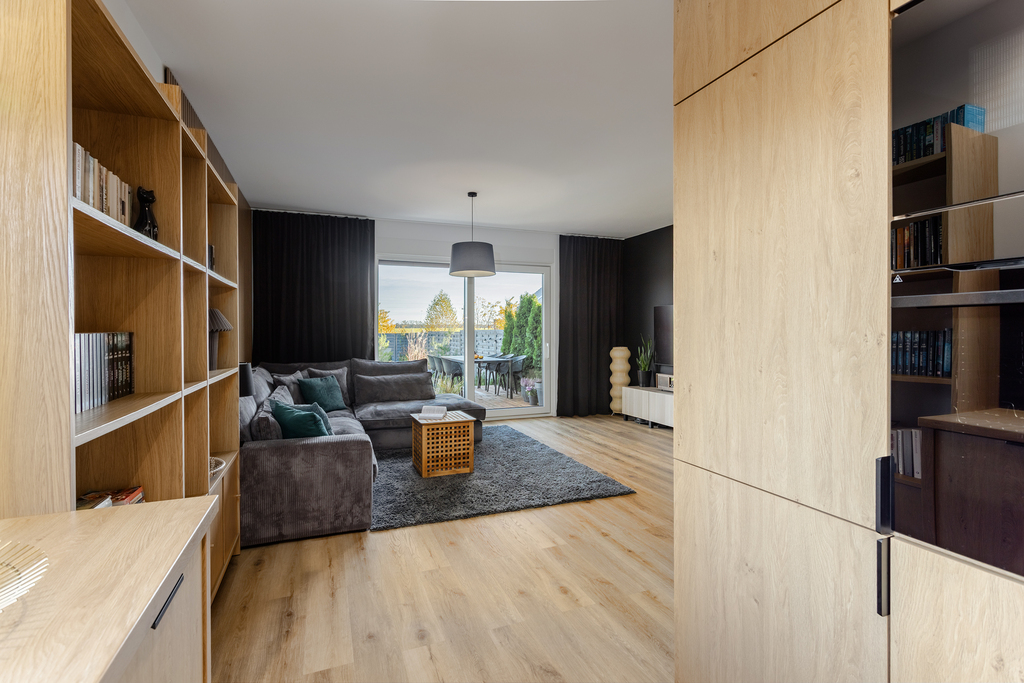 - przestronny salon z jadalnią i wyjściem na taras poprzez duże okno przesuwne typu Slide