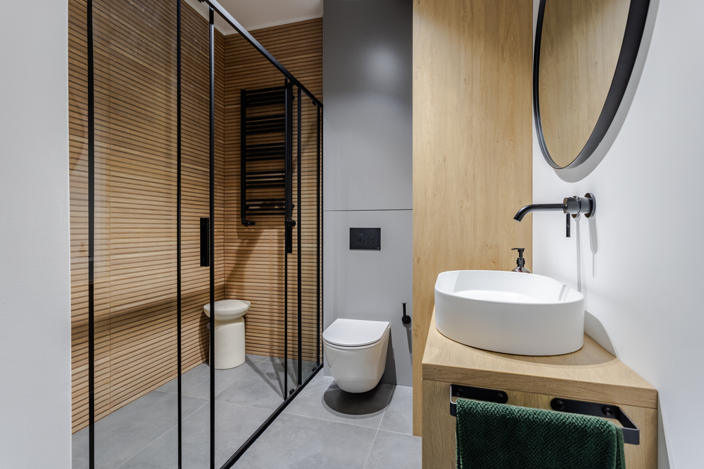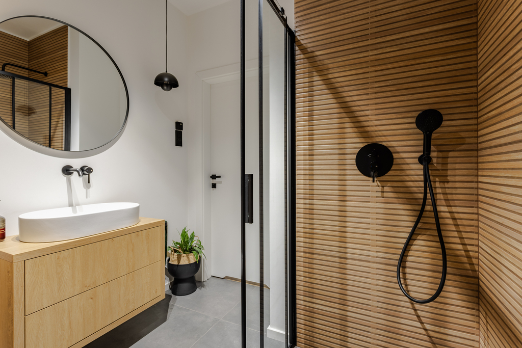- łazienka z prysznicem walk-in (osprzęt TECE, KFA),