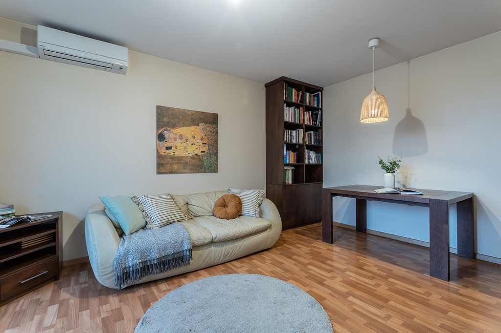 * Salon – sofa, stół, regał, szafka tv