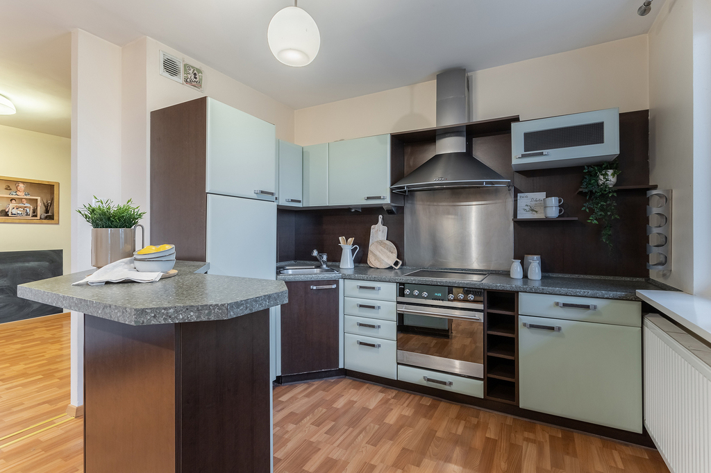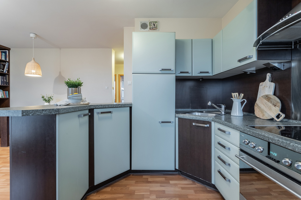 * Kuchnia – zabudowa stała plus sprzęt kuchenny (lodówka, kuchnia, piekarnik, zmywarka)