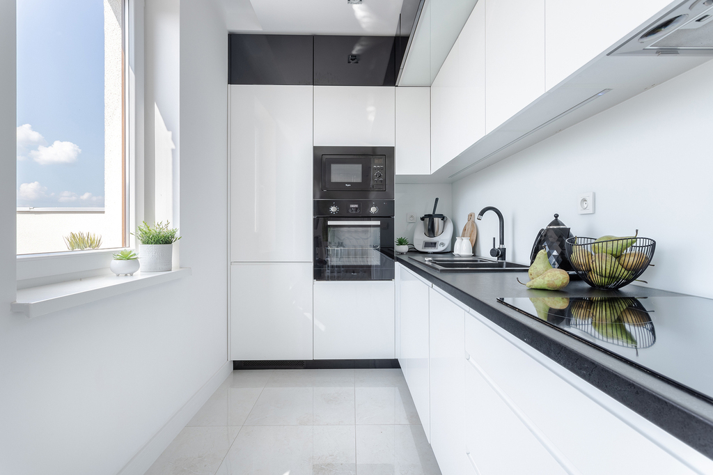 – kuchnia dobrej jakości na wymiar ( w pełni wyposażona w sprzęt AGD ,piekarnik, płyta grzewcza, lodówka, zmywarka, okap )
