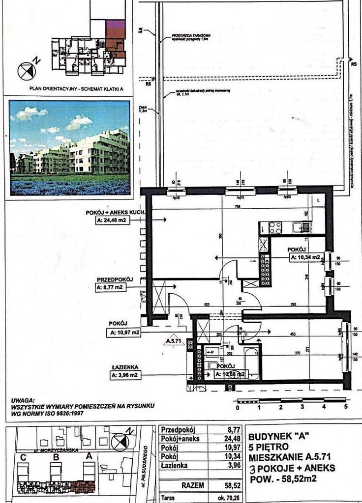 Mieszkanie o powierzchni 58,52 m2 + niesamowity taras o powierzchni aż 75 m2 + miejsce w hali garażowej.