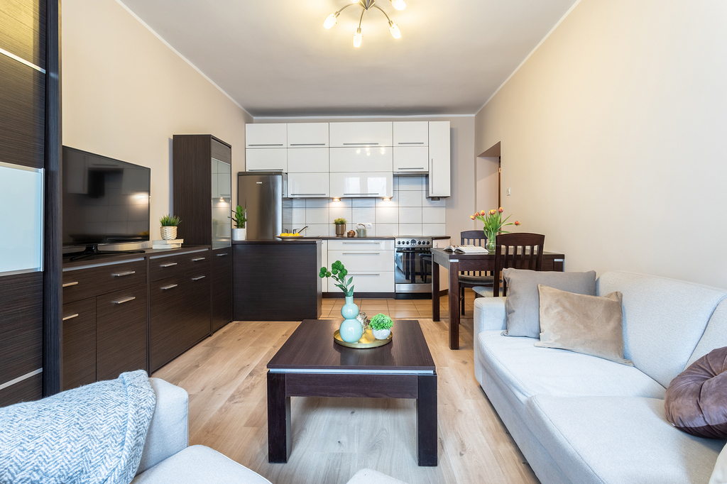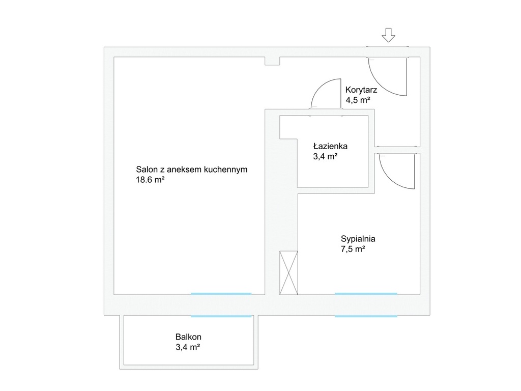– salon z aneksem (18,6m) z wyjściem na balkon