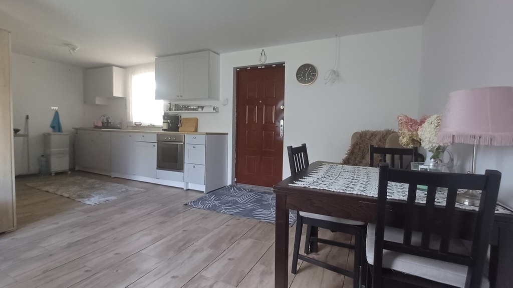 W cenie materiały, panele podłogowe i biała tapeta.