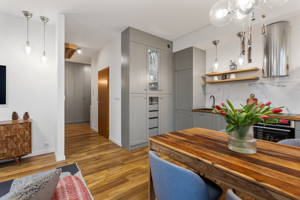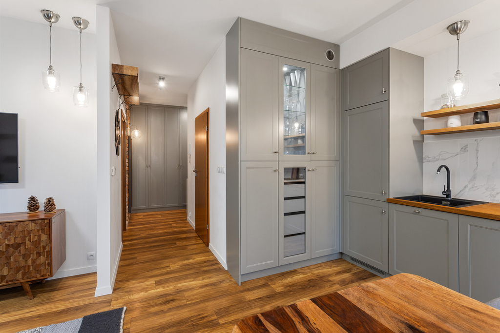 Przestronne wnętrze! Mieszkanie oferuje dużo przestrzeni przy niedużym metrażu, indywidualny projekt zakładał wykorzystanie przestrzeni z naciskiem na ergonomię wnętrza.